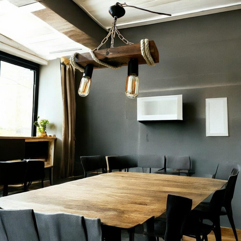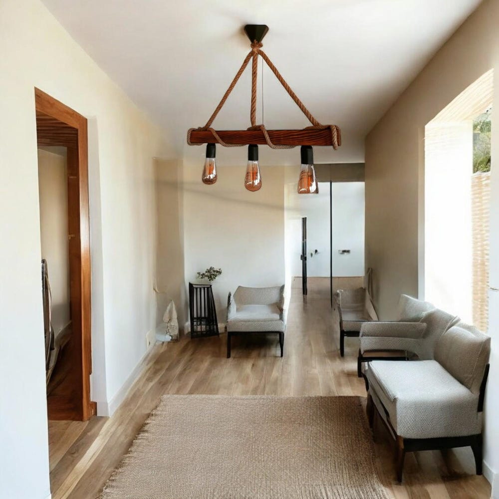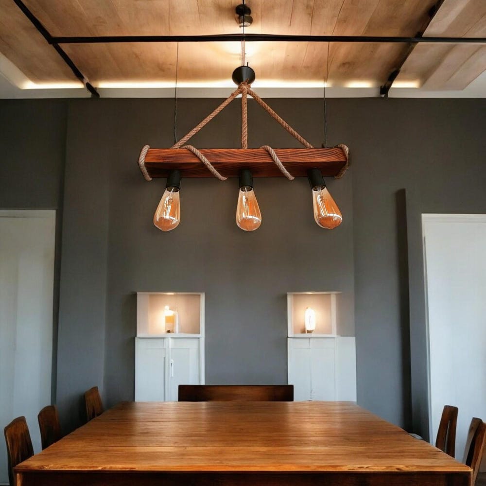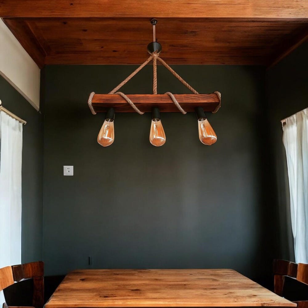 Rustic Wood Rope Pendant Light, Handmade Farmhouse Ceiling Lamp, Industrial Edison Bulb Chandelier, Natural Hanging Light Fixture