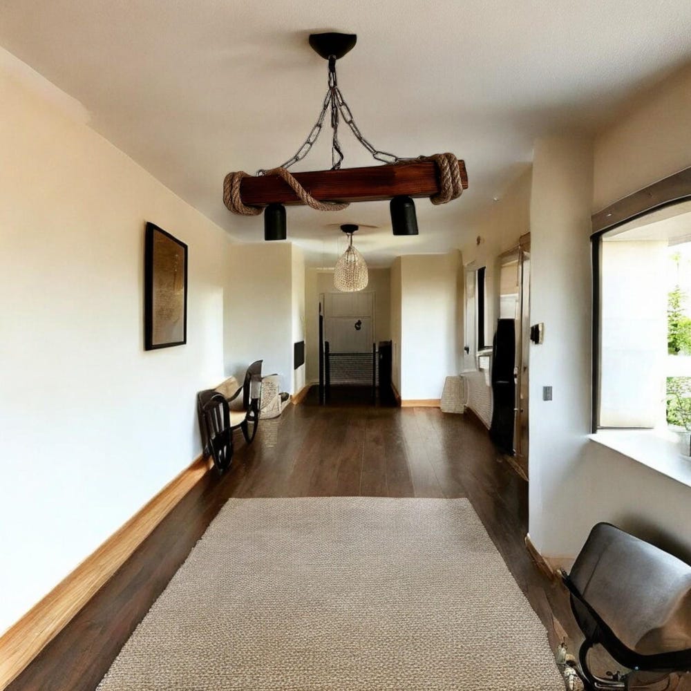 Elevate your interior with the timeless charm of our Rustic Wood Rope Pendant Light — a handcrafted ceiling fixture designed to add warmth, character, and a cozy vintage touch to your living space. Made from solid wood and wrapped in natural jute rope, this piece effortlessly blends rustic aesthetics with industrial flair.
