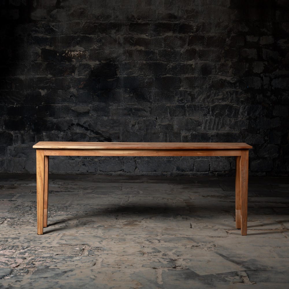 Each console table is meticulously crafted by our skilled artisans, showcasing the inherent beauty of reclaimed neem wood. The smooth surface highlights the unique grain patterns and natural imperfections, giving each piece its own distinctive character. Supported by tapered legs, this console table exudes stability and a sense of refined style.