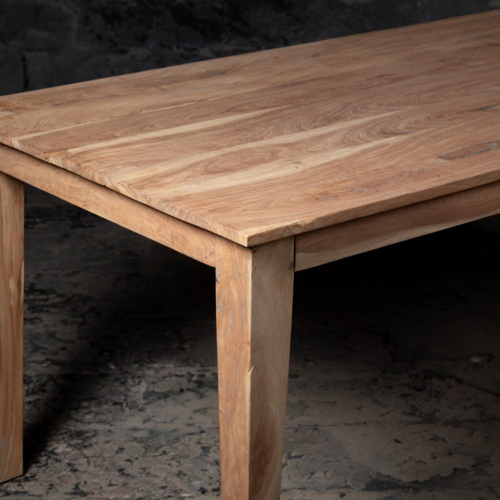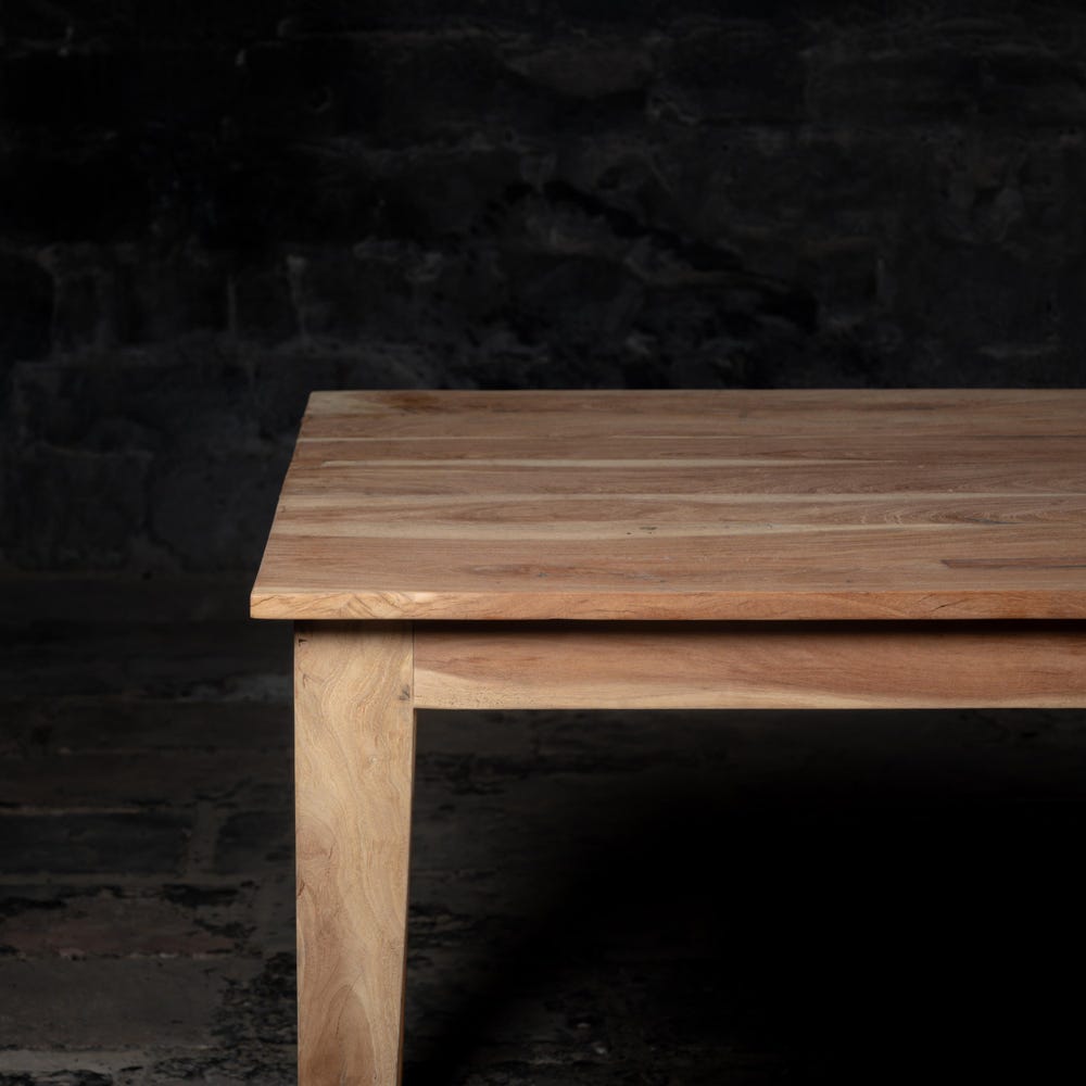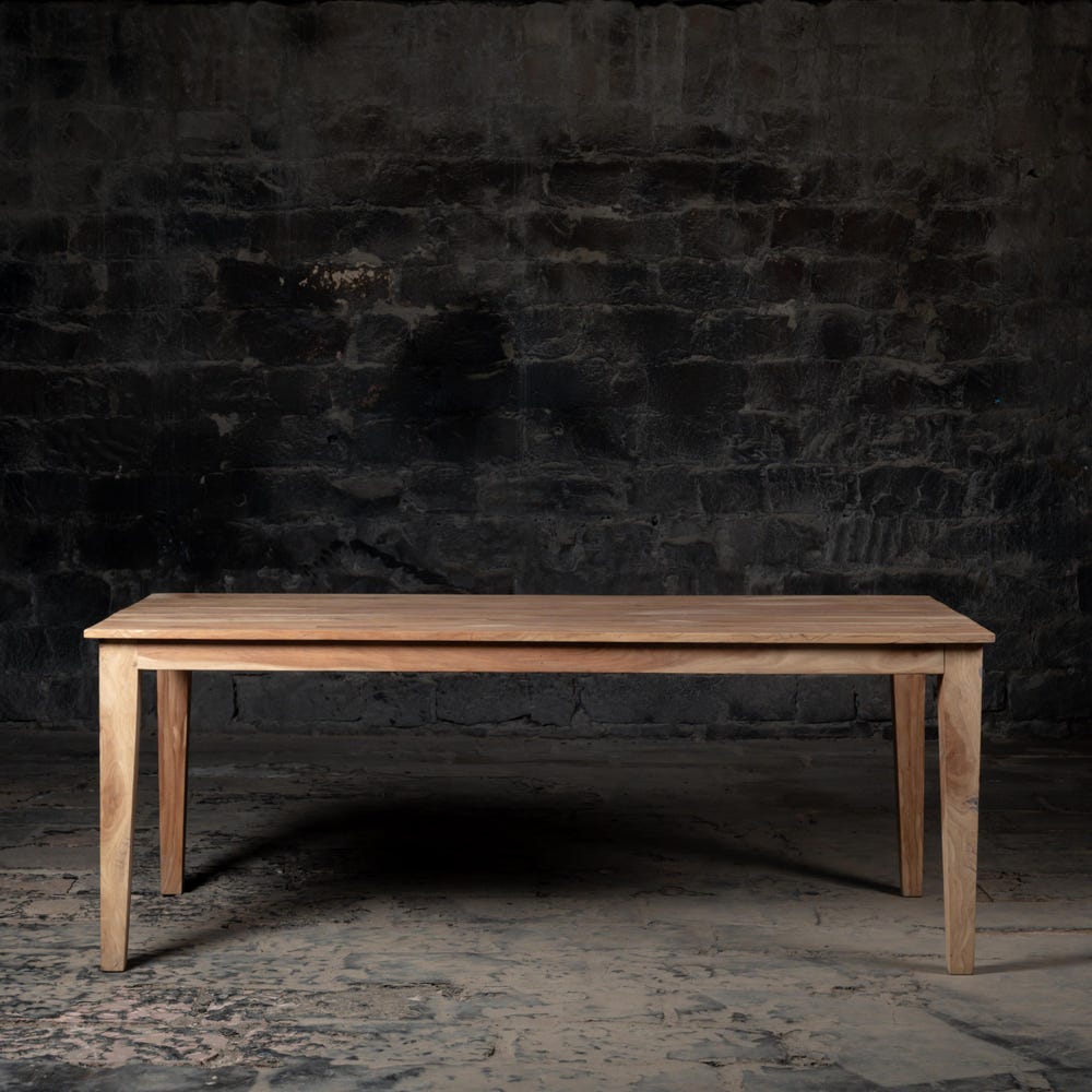 Each dining table is meticulously crafted by our skilled artisans, ensuring a smooth finish and attention to detail. The distinct grain patterns and imperfections of the reclaimed neem wood add a touch of natural beauty to every piece. The taper legs provide stability and elegance, enhancing the overall aesthetic appeal.