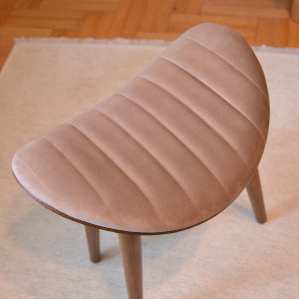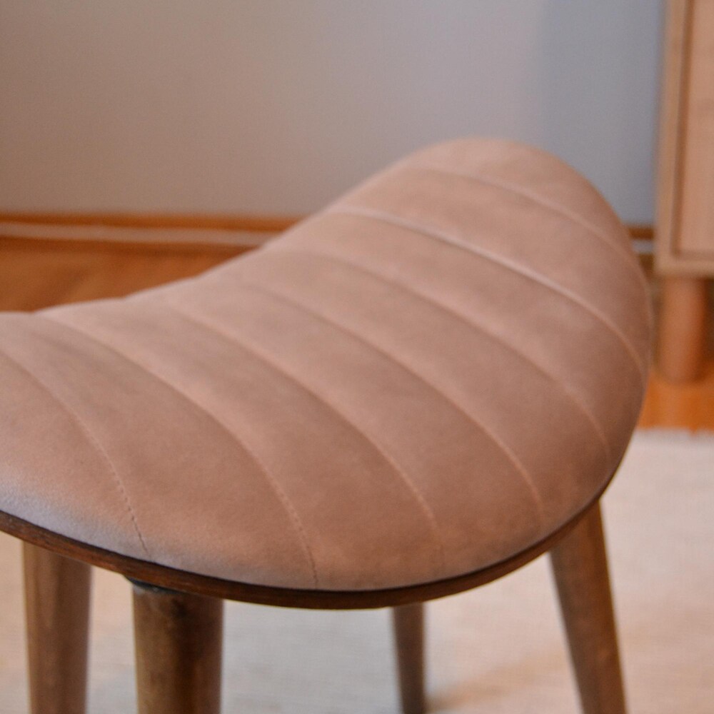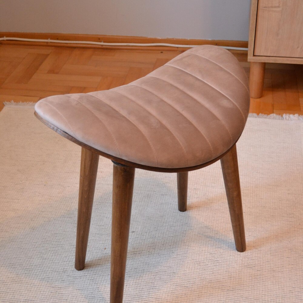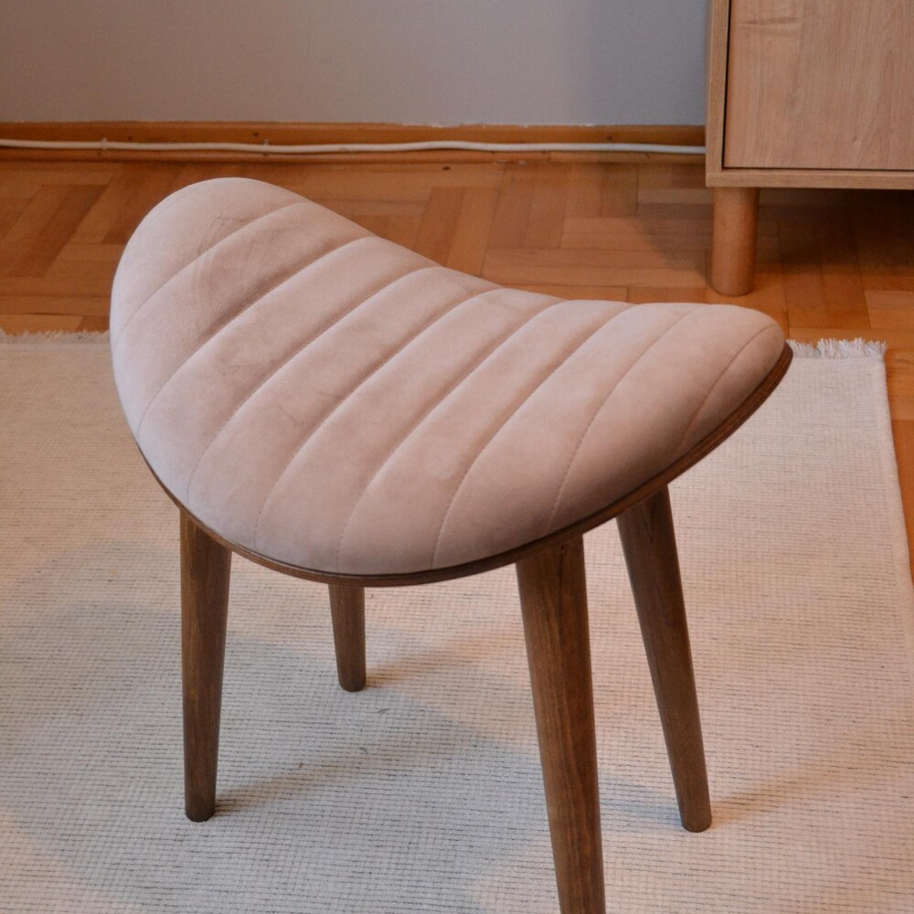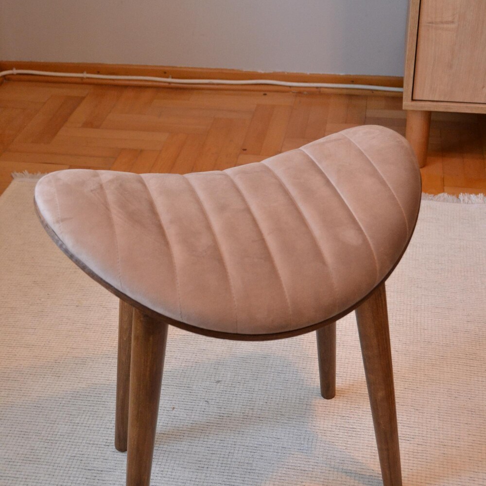 Sand Minimalist Stool – Curved Upholstered Seat, Solid Beech Wood Legs, Easy Assembly, Soft Neutral Accent