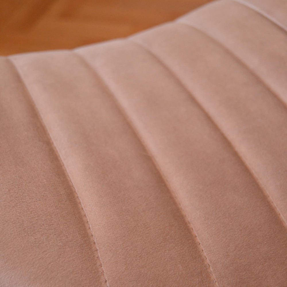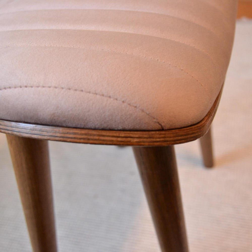 Gently curved seat upholstered in a smooth, sand-colored fabric for everyday elegance.