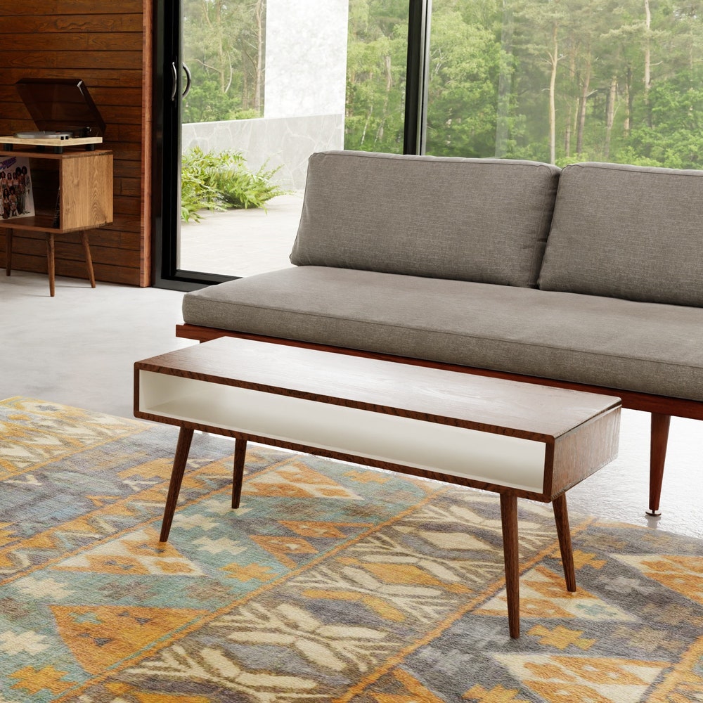 Scandi elegance and artful aesthetics come together in this sleek coffee table finished with an ivory trim. The contrast of wild walnut meets demure ivory white communicates a pretty palette that will both blend in and stand out in equal measure.