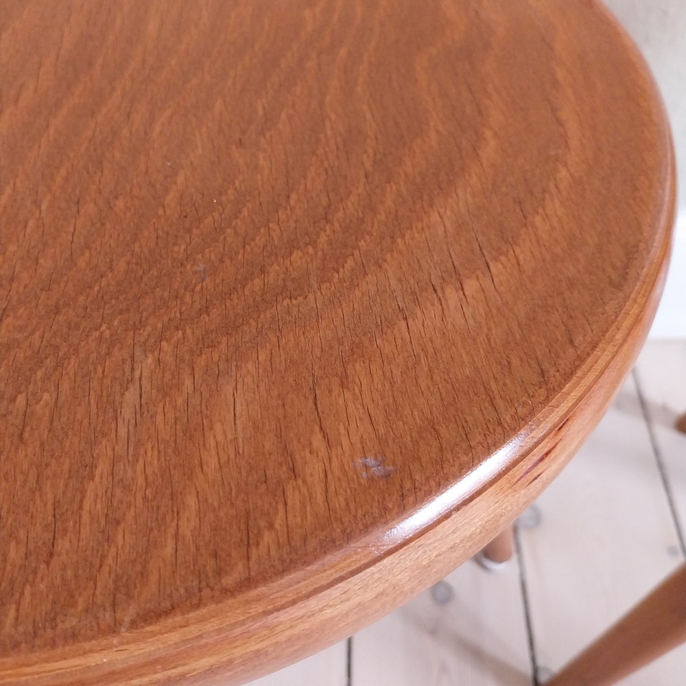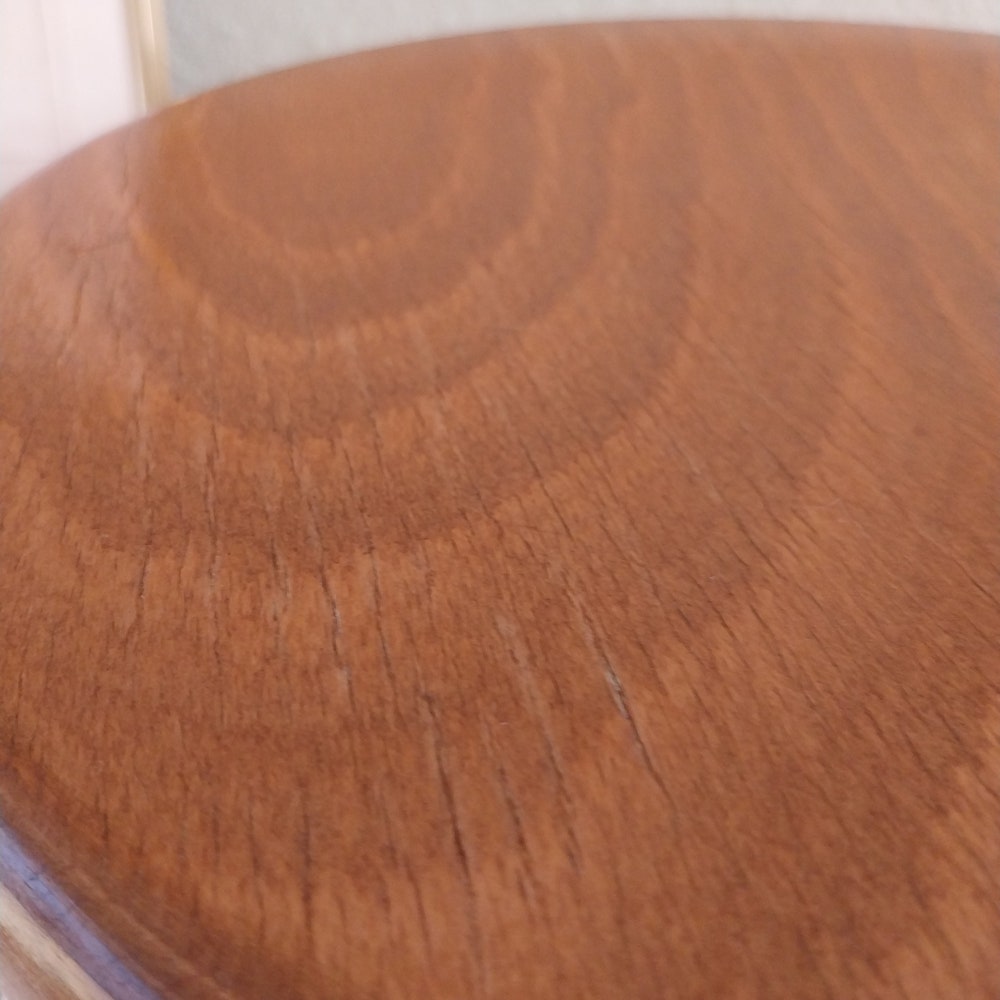 The seat of the left stool has a slightly raised (very discreet) surface, giving it a more patinated look. A mark on the seat. A slight mark on the seat of the right stool.