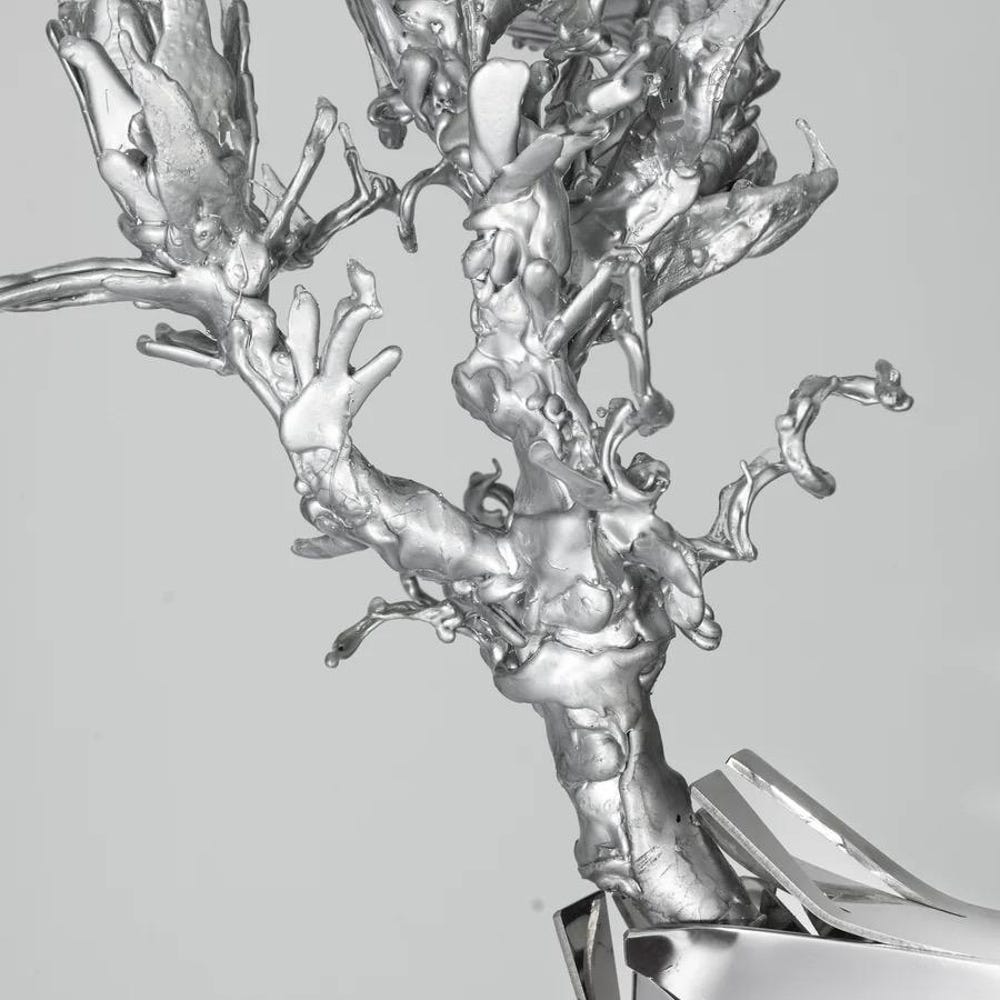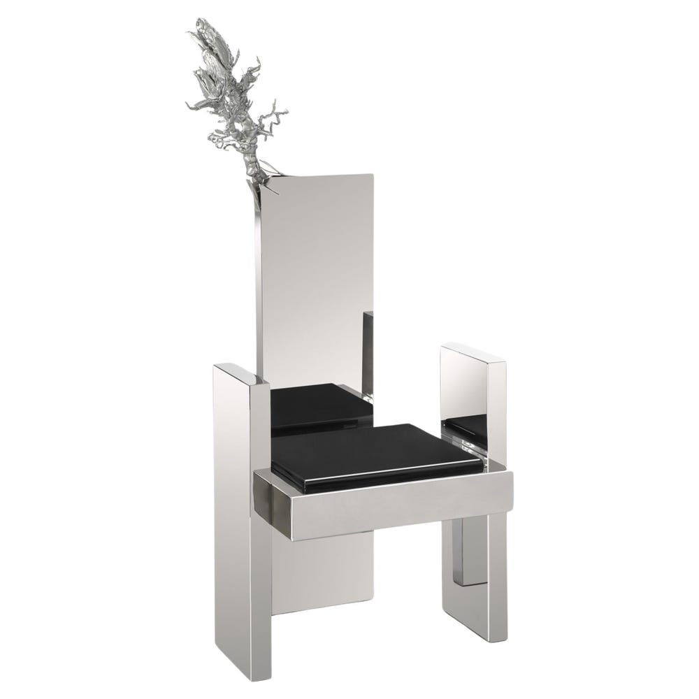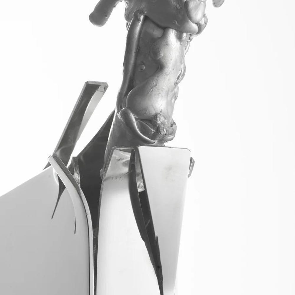 Scavenger Stainless Steel Chair with Chrome Resin Sculpture | Terminator Collection Design, Modern Artistic Home Decor, Studio Chair