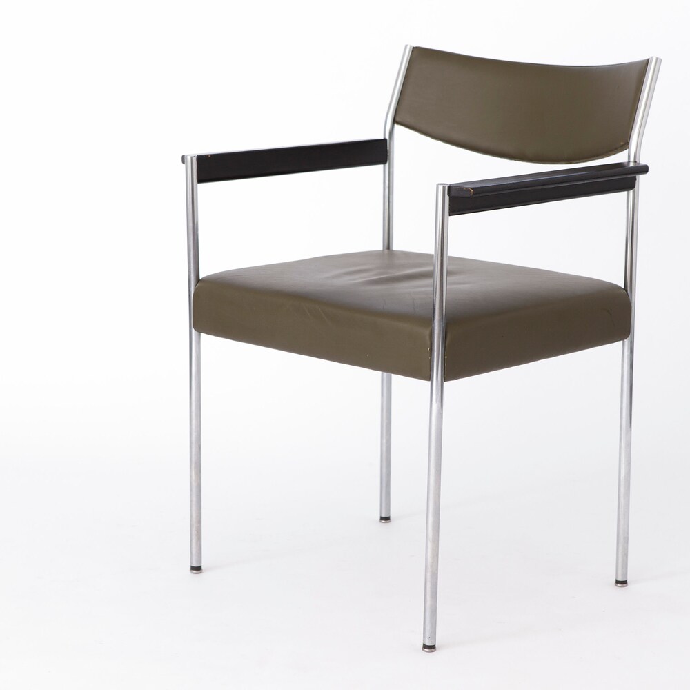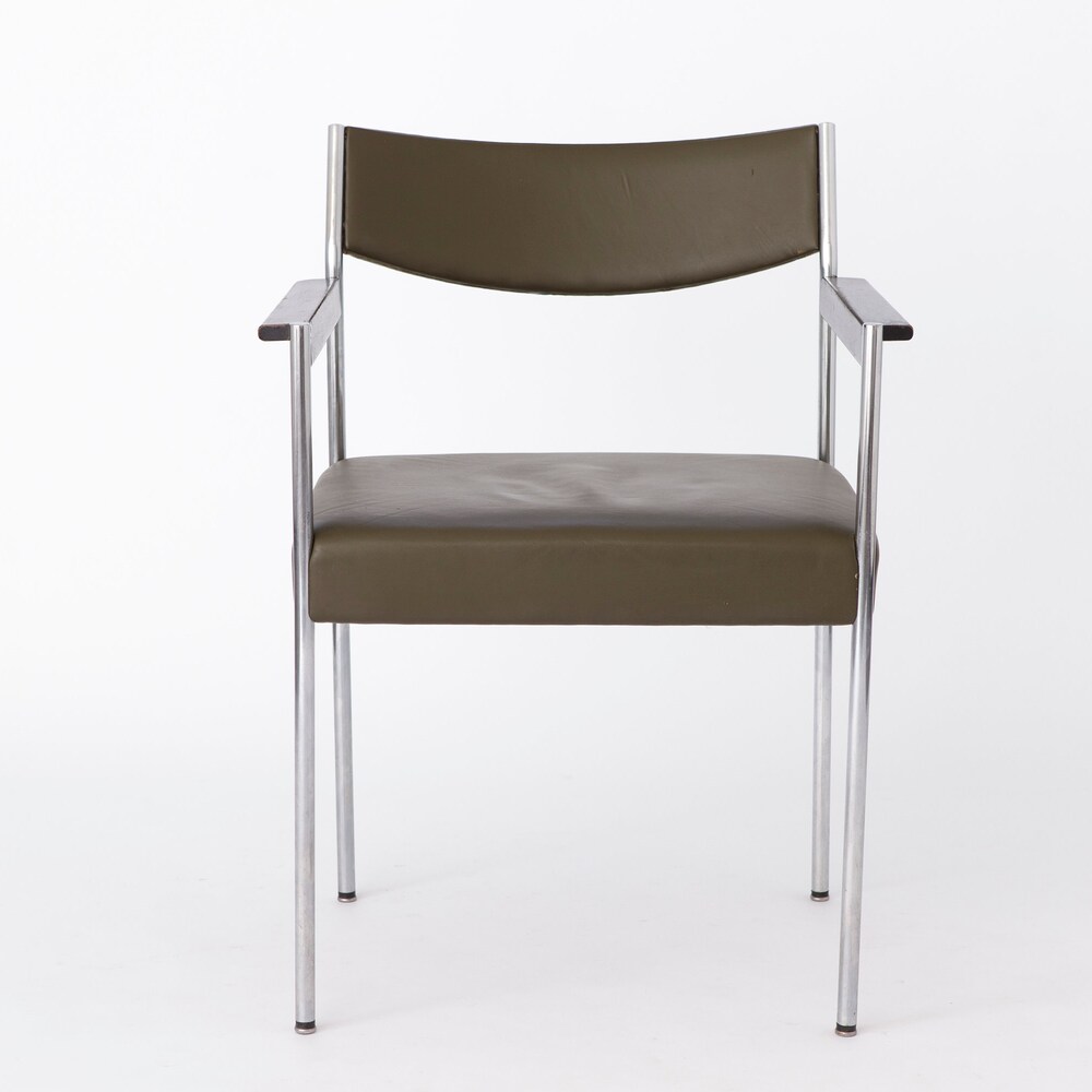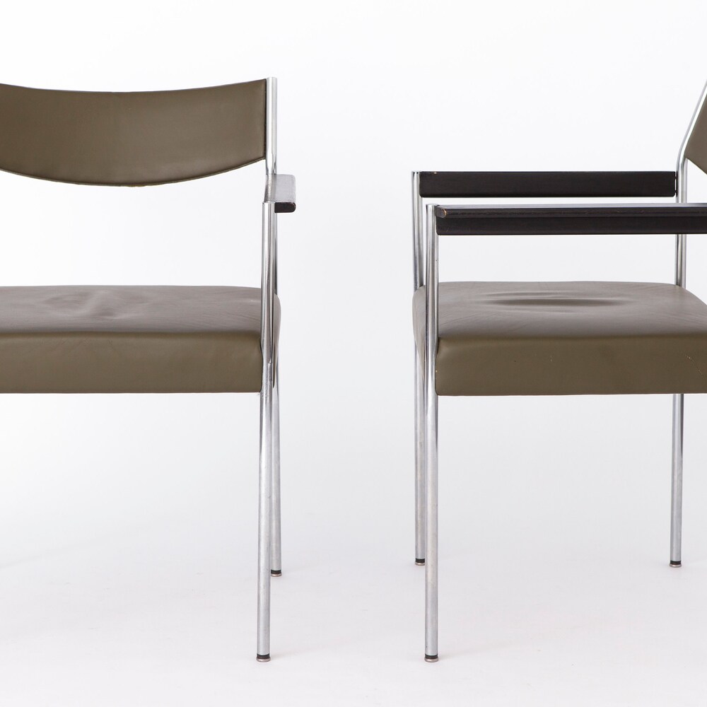Set of 2 armchairs by Edlef Bandixen | 1970s | Olive Leather + Chrome | Kusch & Co | Worldwide Shipping