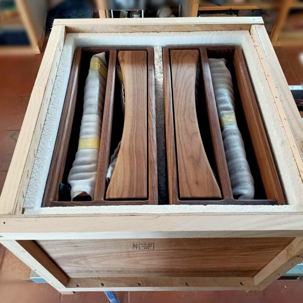 The bedside tables are shipped in their own padded wooden box via air transport and insured against all risks.