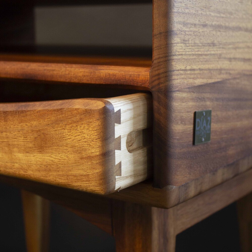 Inside the drawers are crafted from chestnut to showcase the dovetail joints, in contrast to another type of wood.