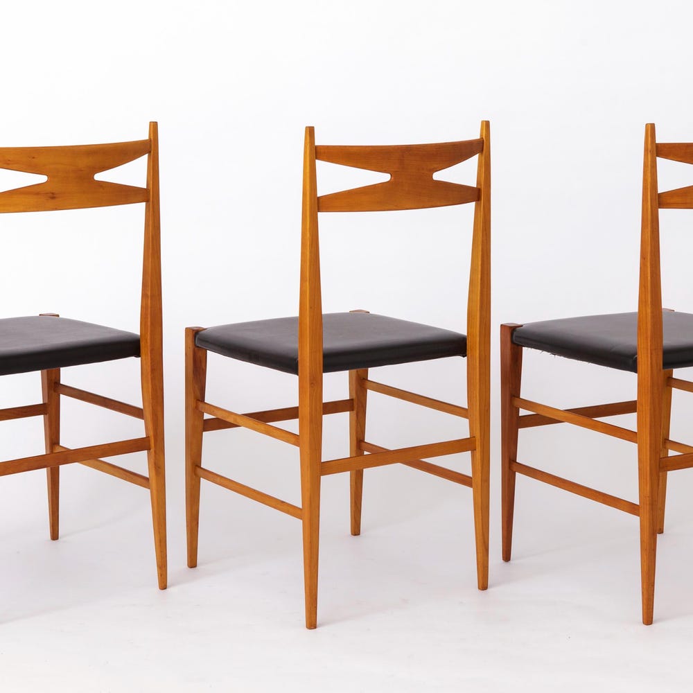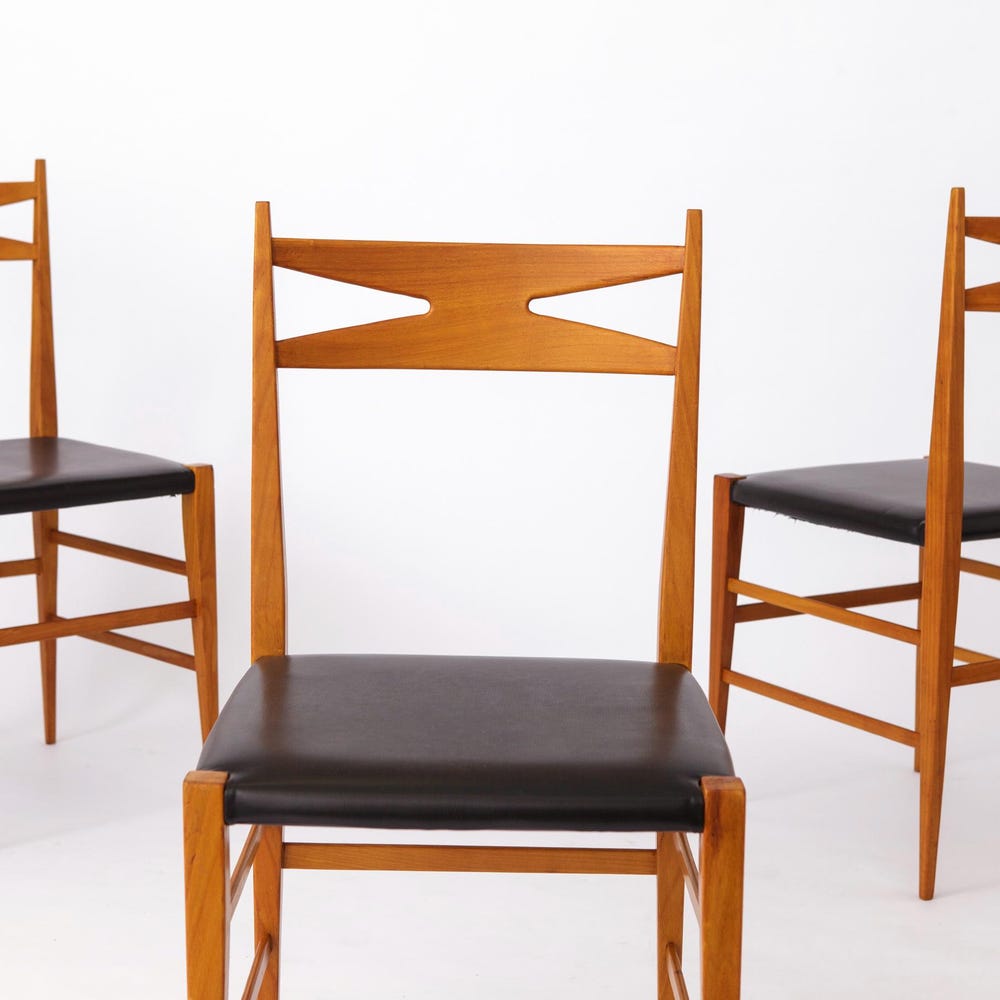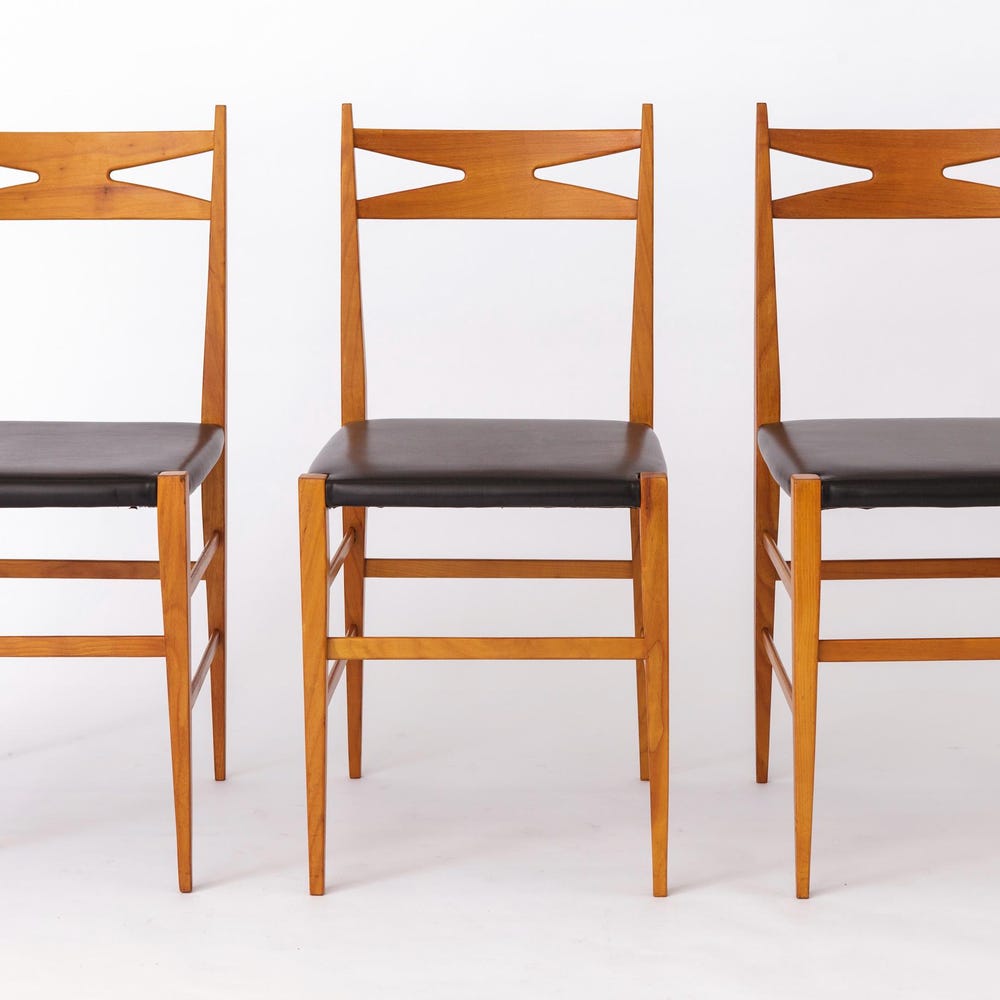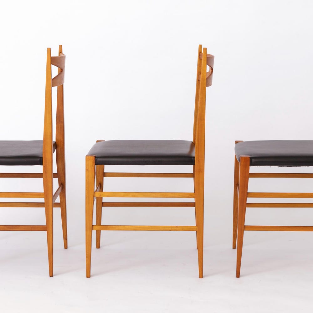 Set of 3 Dining Chairs from the 1970s, Beech Wood, Black Skai Upholstery – Vintage German Mid-Century Modern