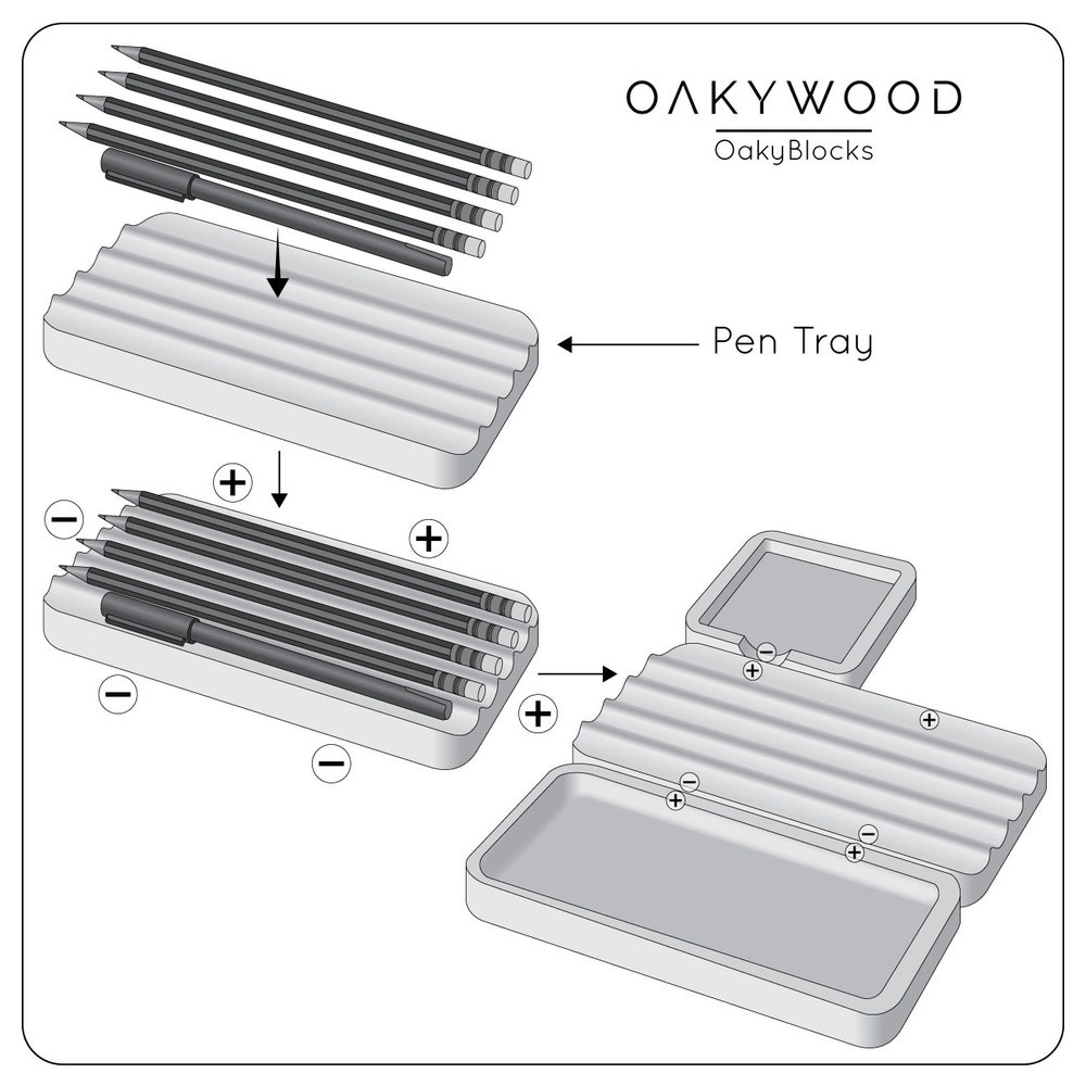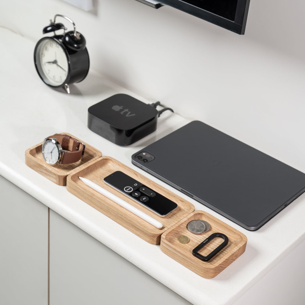 Organizing your workspace starts with sorting out the small items making the biggest mess. The OakyBlocks come to the rescue – the range of wooden organizers with built-in magnets allow you to combine the modules. Simply place and combine, detach and move OakyBlocks at will to regain control over your desk.