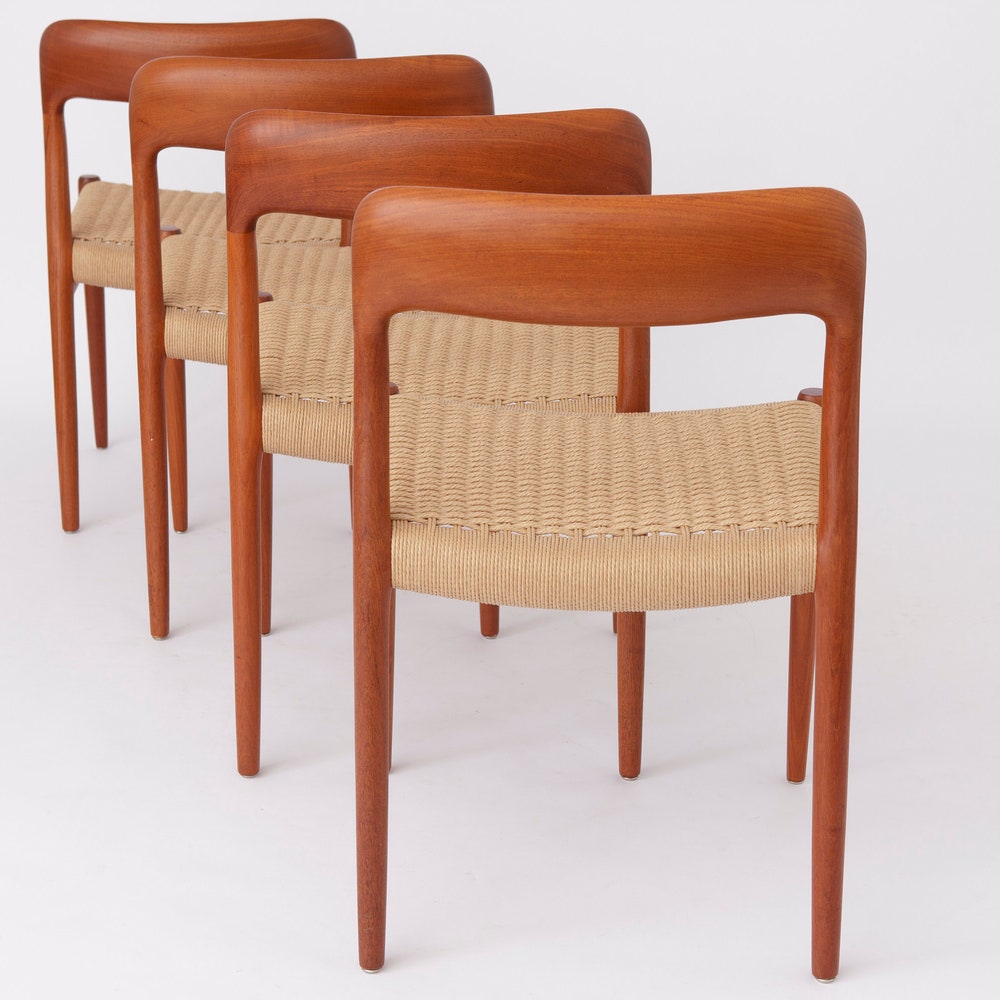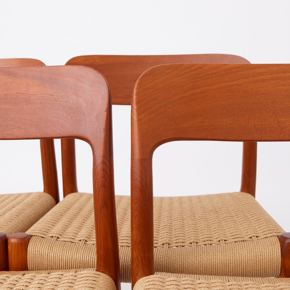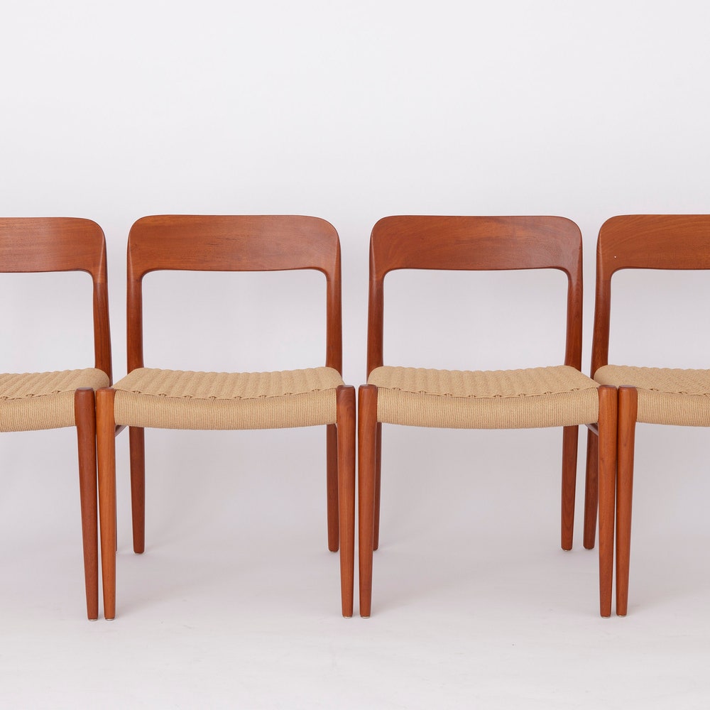Set of 4 Niels Møller Model 75 Chairs – Vintage Danish Mid-Century Teak & Danish Cord, Refurbished