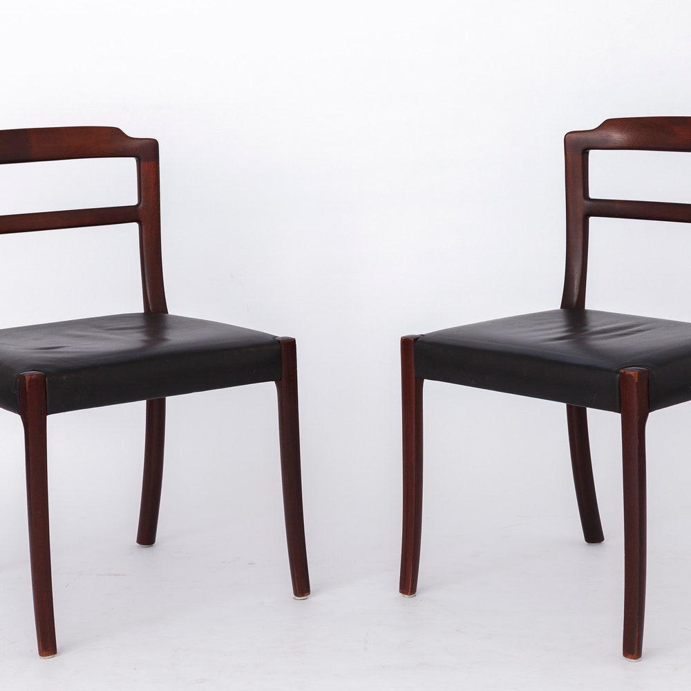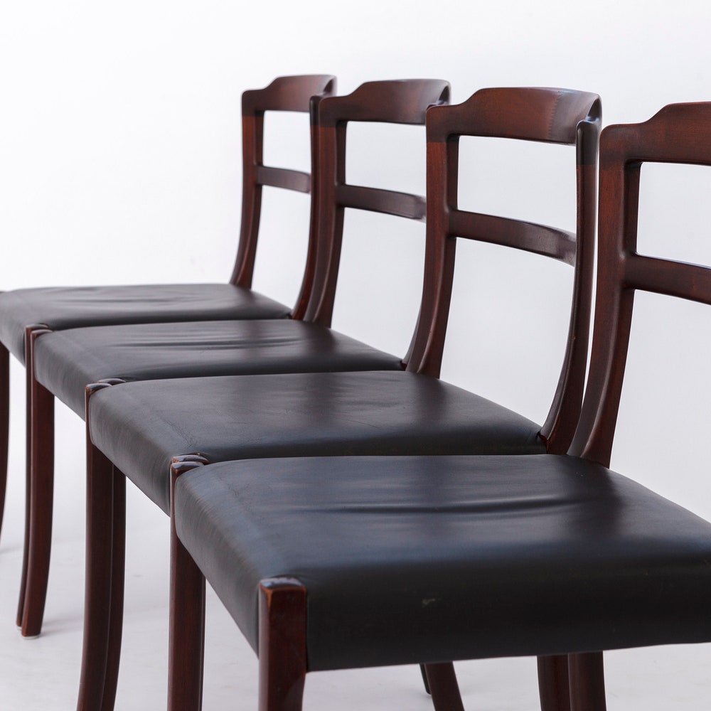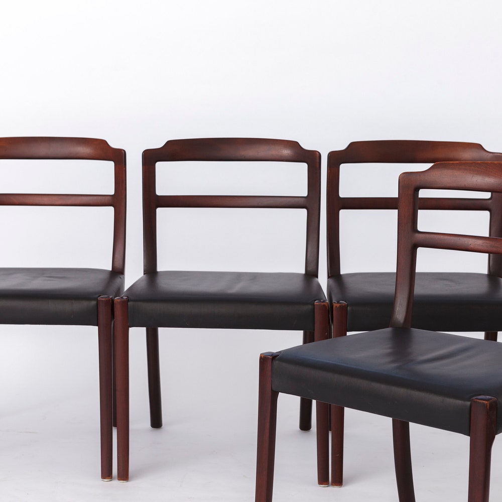 Set of 4 Ole Wanscher Rosewood Dining Chairs – Danish Mid-Century Design with Black Leather Seats