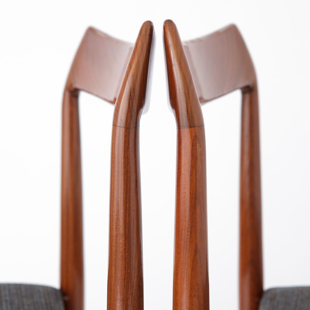 Set of 4 Teak Dining Chairs – Refurbished, Light Gray Upholstery, Mid-Century Modern