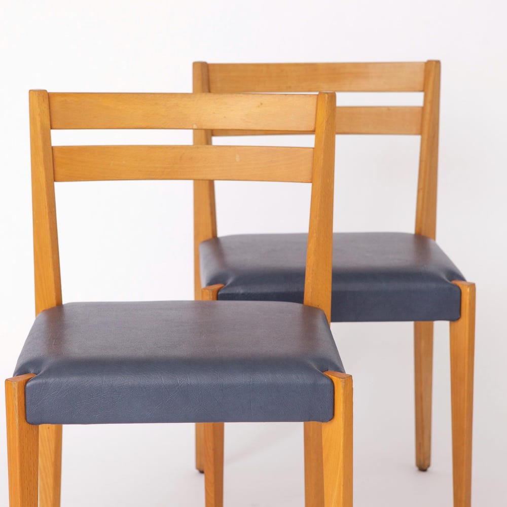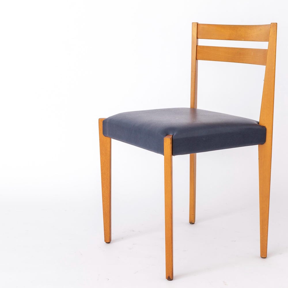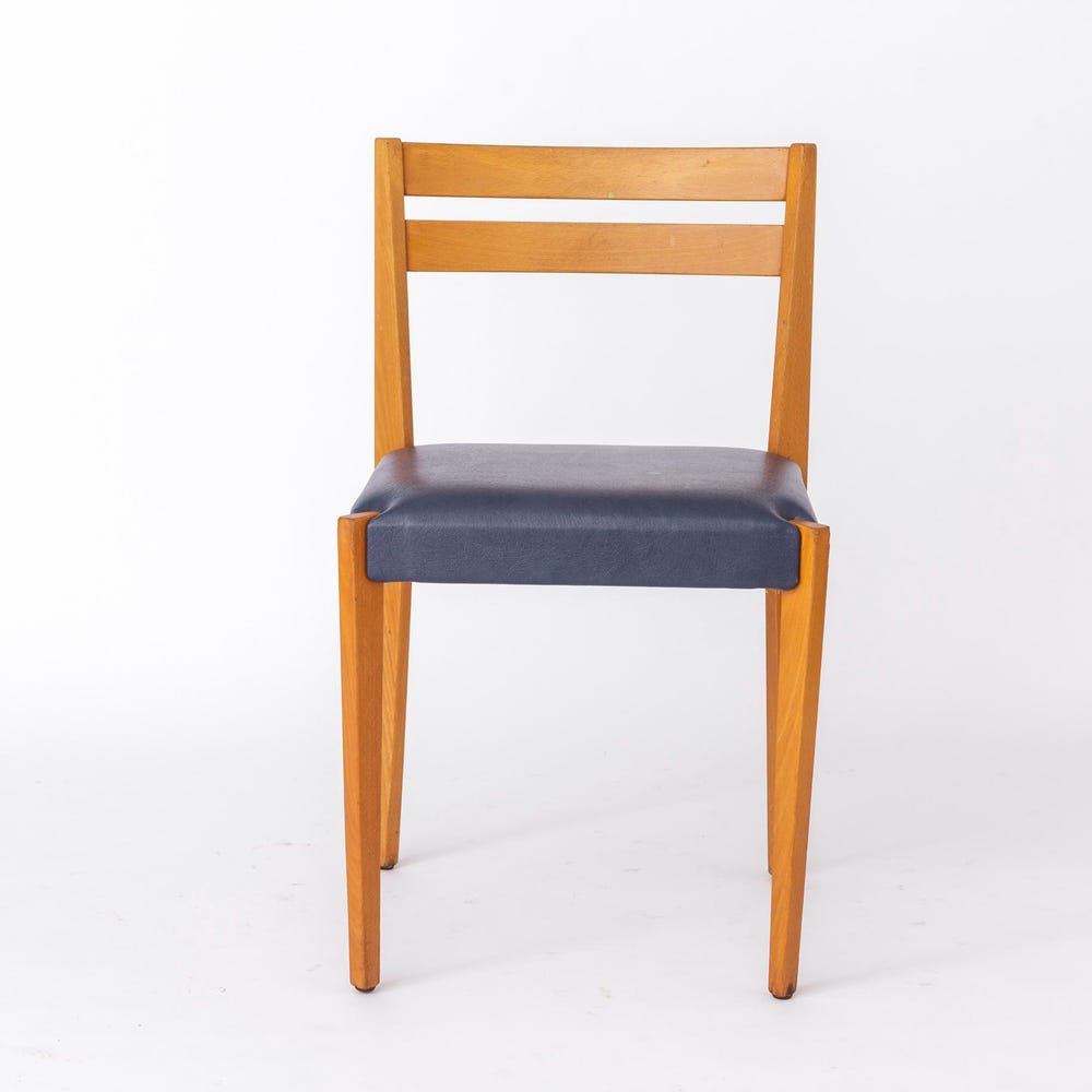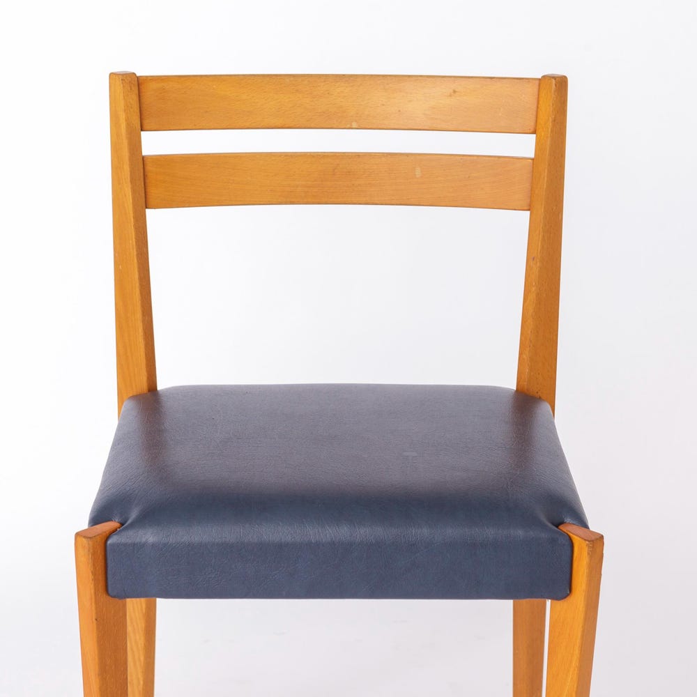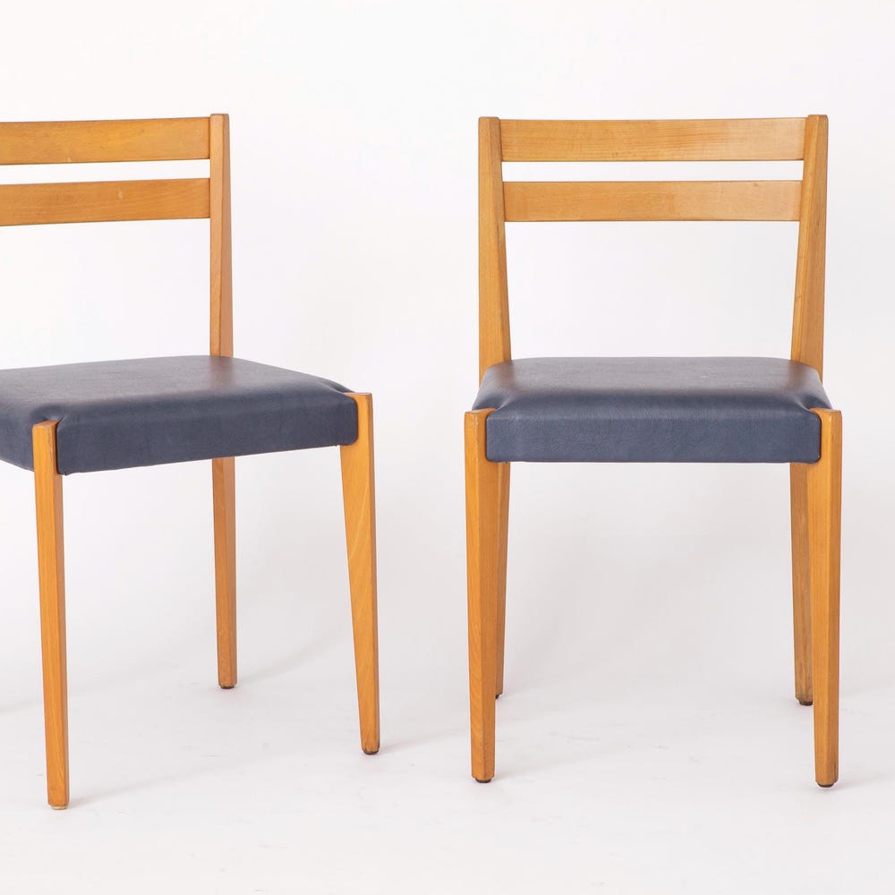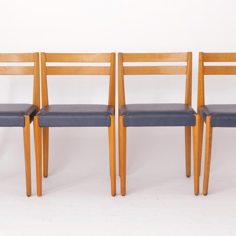 Set of 4 Vintage Thonet Chairs, 1960s-1980s – Restored Beech Wood & Dark Blue Upholstery