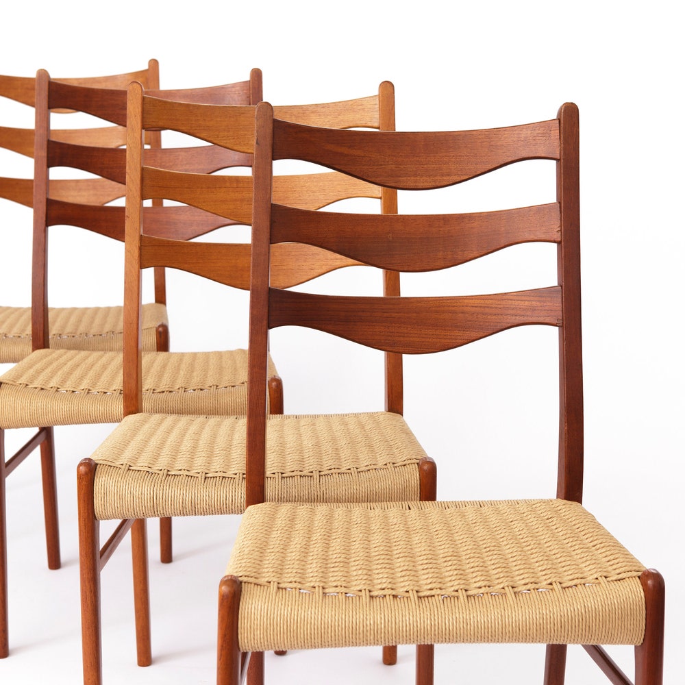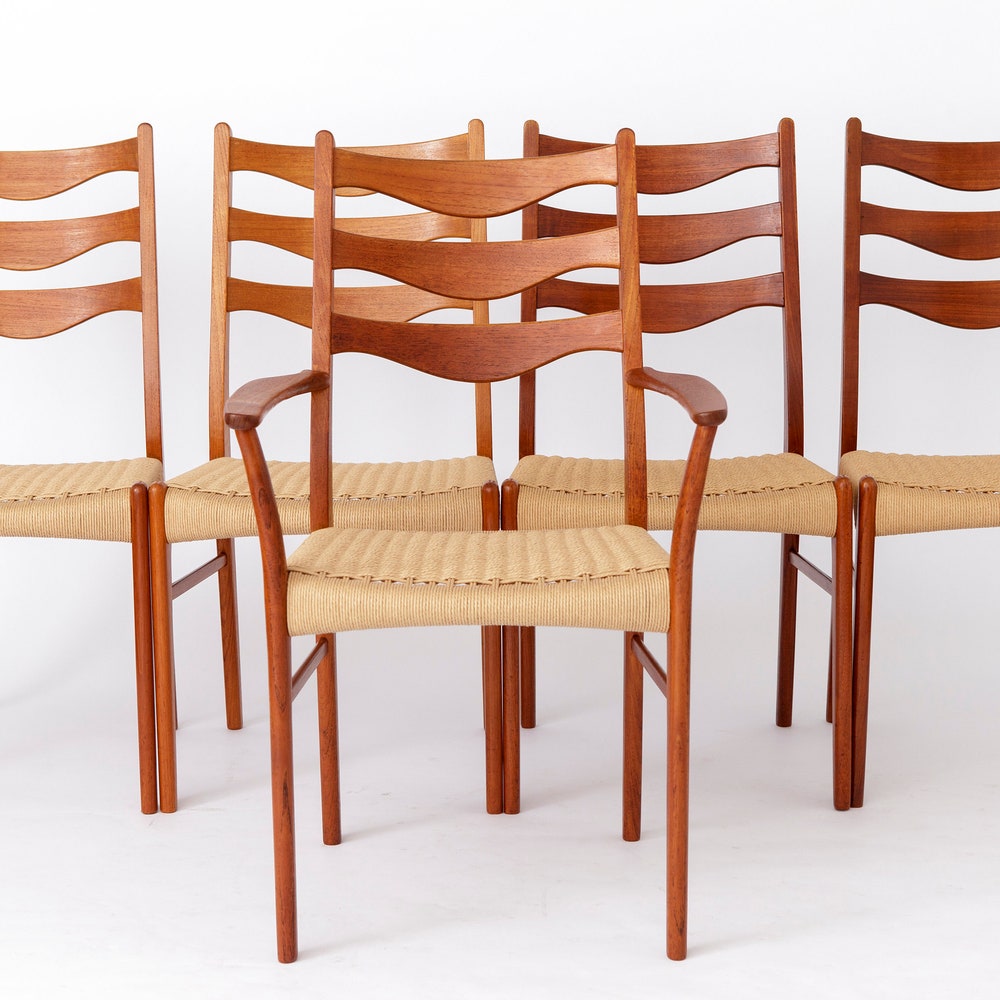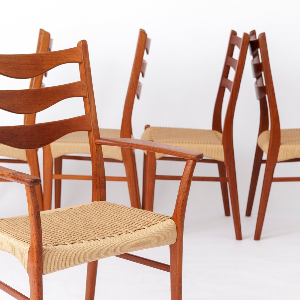 Set of 5 Danish Dining Chairs by Arne Wahl Iversen – Teak Wood, Paper Cord, 1960s