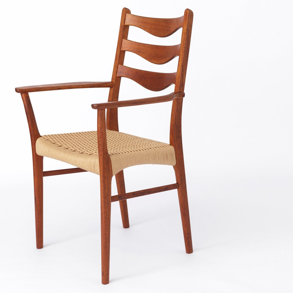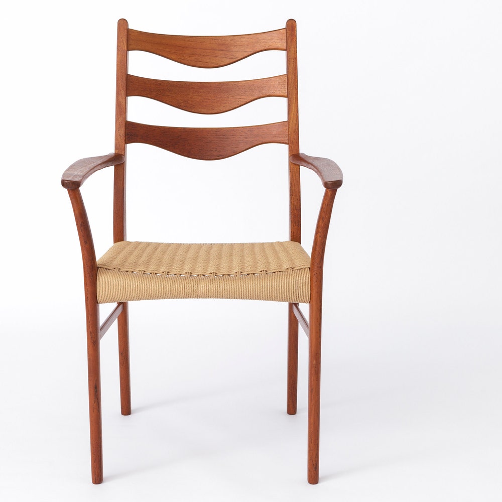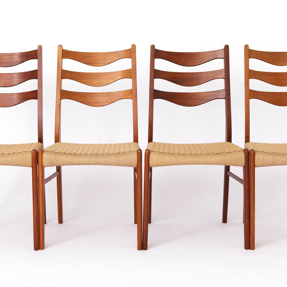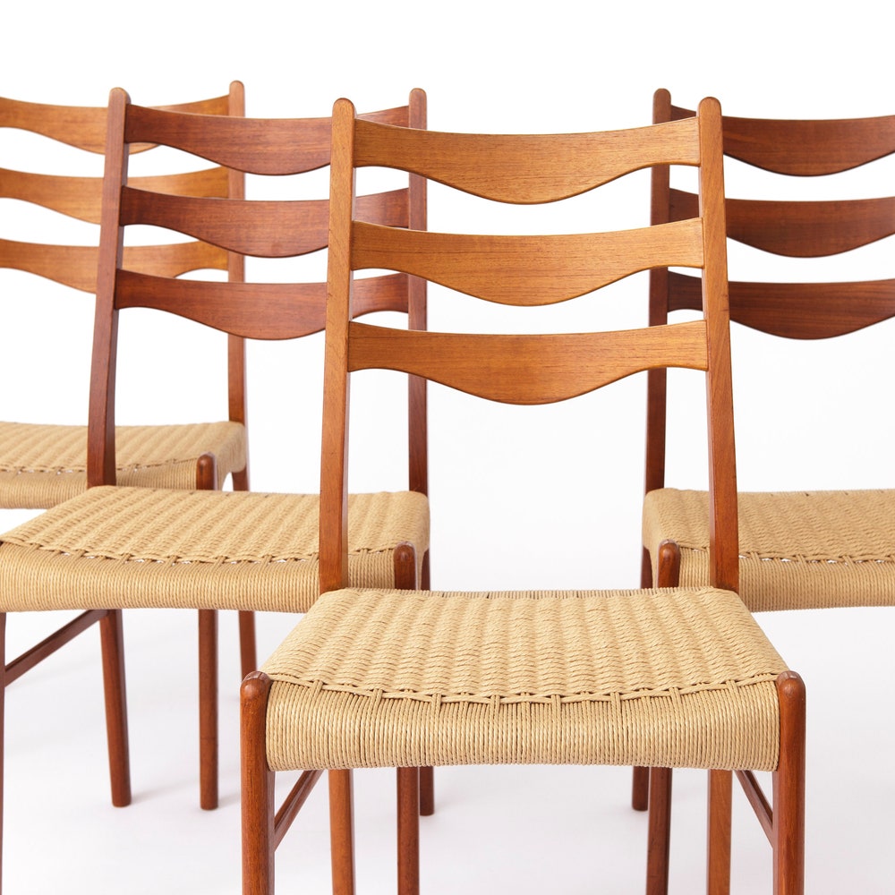 Set of 5 Danish Dining Chairs by Arne Wahl Iversen – Teak Wood, Paper Cord, 1960s