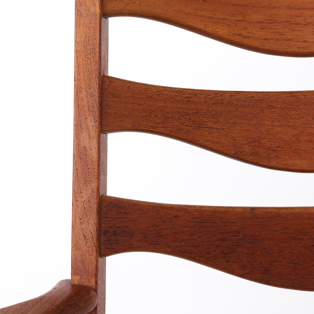 Add a touch of Scandinavian elegance to your dining space with this stunning set of 5 dining chairs designed by the renowned Arne Wahl Iversen and crafted by Glyngøre Stolefabrik. These Model GS91 chairs feature sturdy teak frames that have been refurbished and oiled to perfection. The seats are re-woven with paper cord, adding timeless charm and durability.