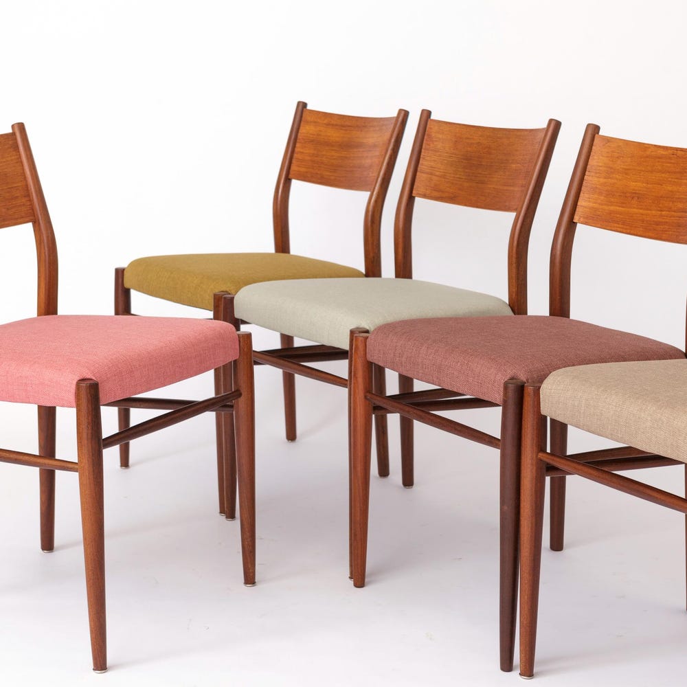 Set of 5 Vintage Chairs by Lübke, Germany | 1960s-1970s | Teak Wood Frames | Refurbished & Reupholstered | Worldwide Insured Shipping