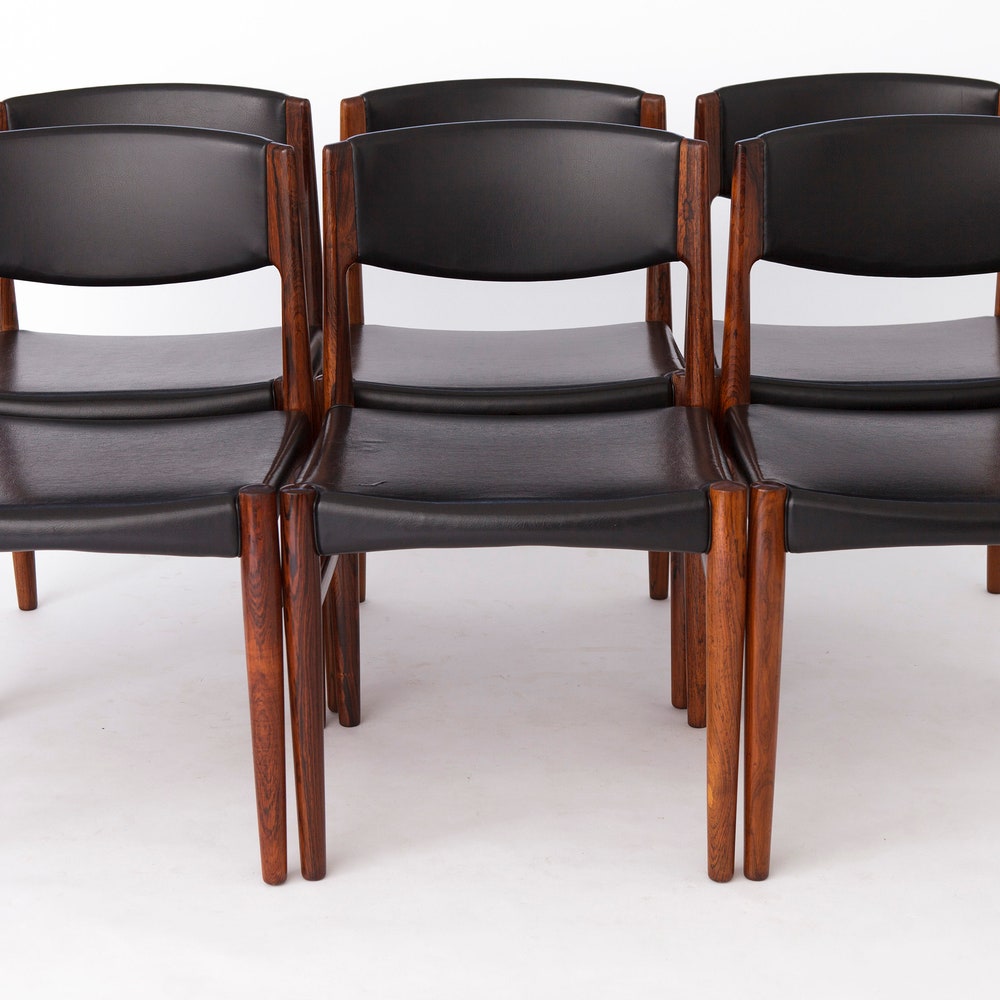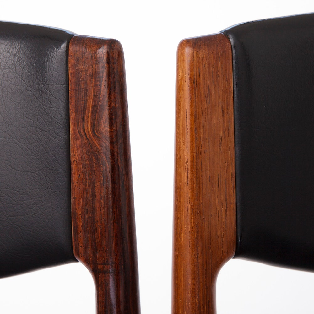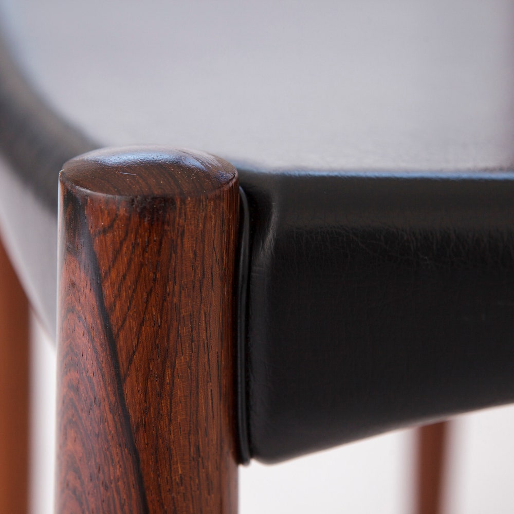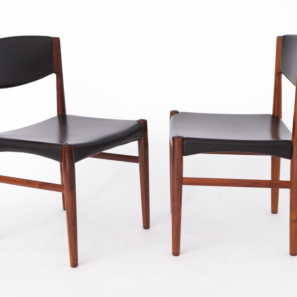 Set of 6 Danish Dining Chairs by Grete Jalk for Glostrup, 1960s – Rosewood Frame, Black Leather Upholstery, Mid-Century Modern