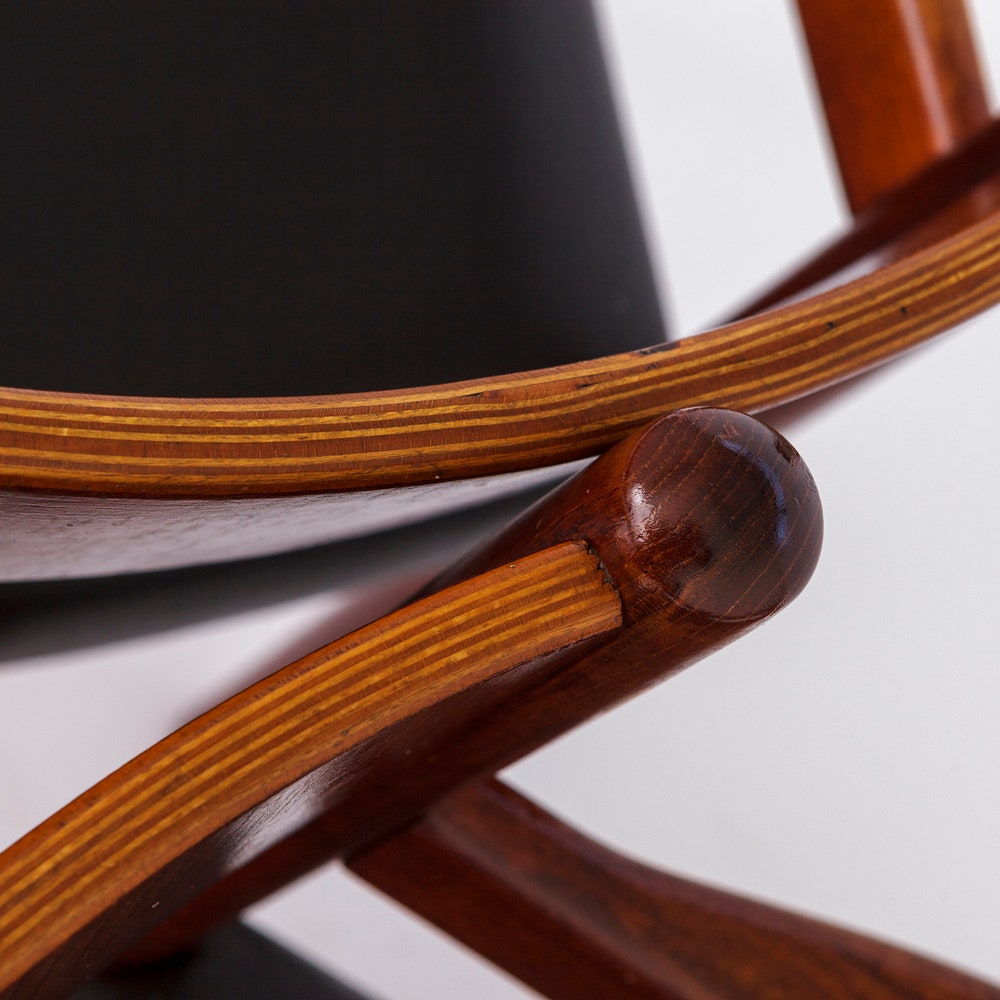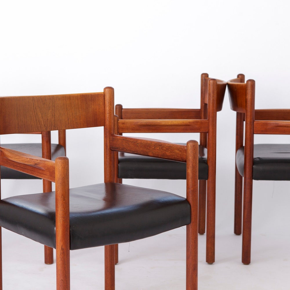 Set of 6 Danish Teak Armchairs | Vintage Dining/Desk Chairs with Black Leather Seats