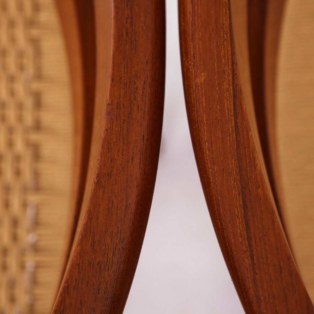 Quality Construction: Sturdy teak wood frames refurbished to their original beauty, paired with renewed cord seats for a comfortable and durable seating experience.