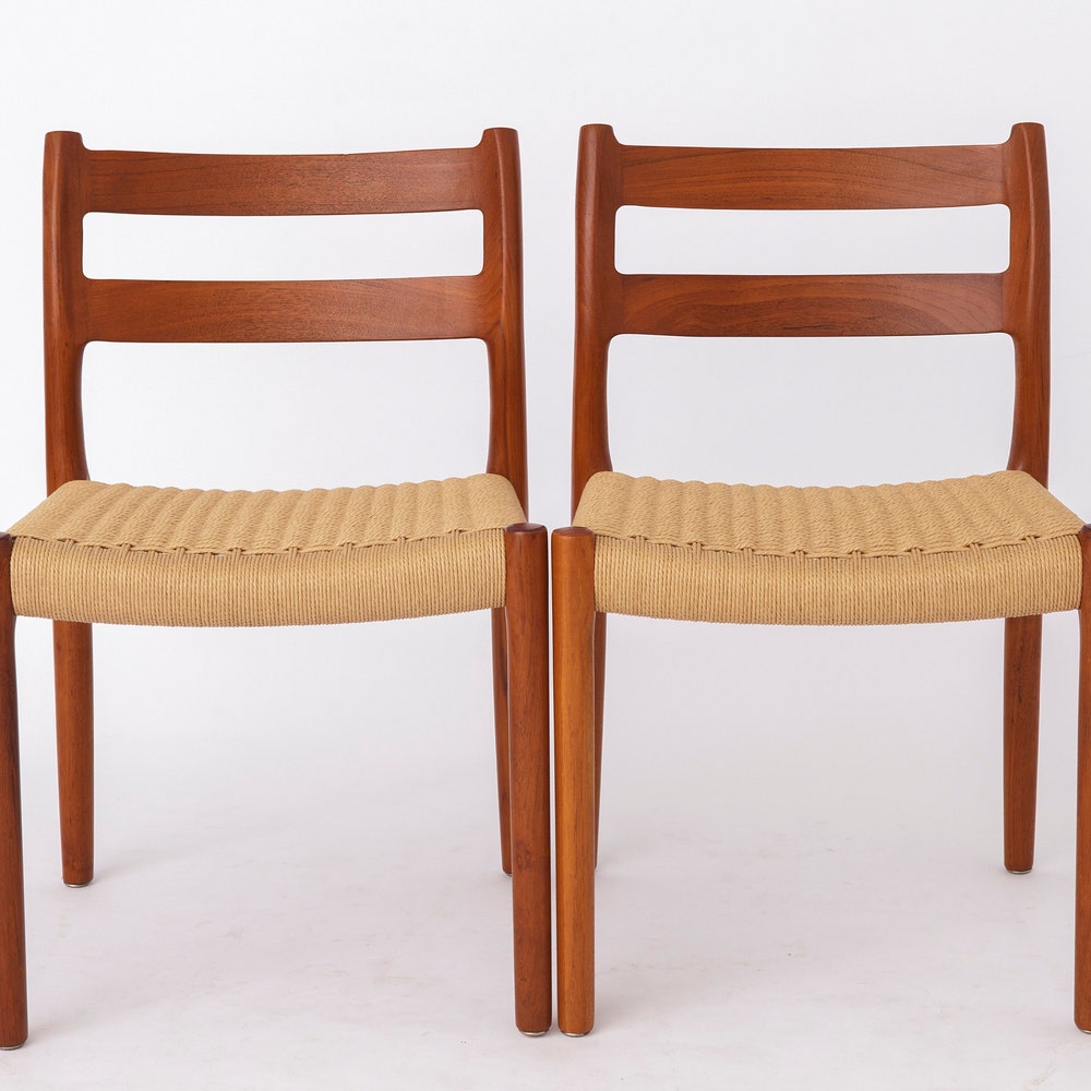 Set of 6 Niels Otto Moller Teak Dining Chairs, Model 84, 1976 – Renewed Cord Seats, Makers Mark, Worldwide Shipping