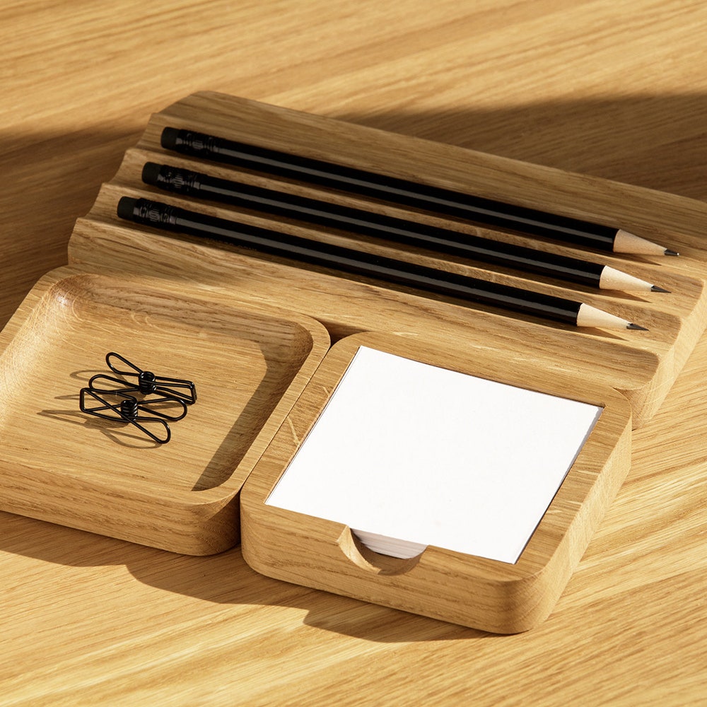 Organizing your workspace starts with sorting out the small items making the biggest mess. The OakyBlocks collection comes to the rescue – the range of wooden organizers with built-in magnets allow you to combine the modules. Simply place and combine, detach and move OakyBlocks at will to regain control over your desk.