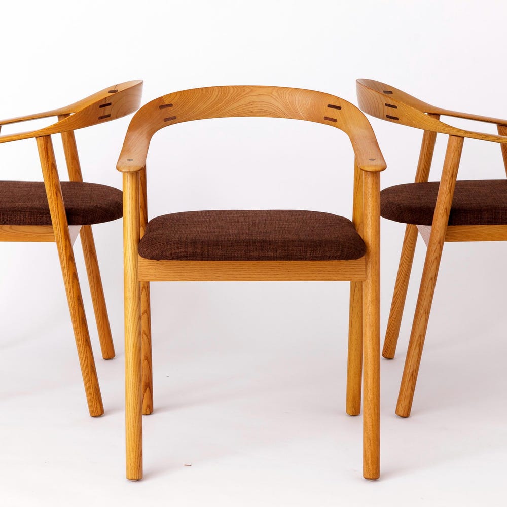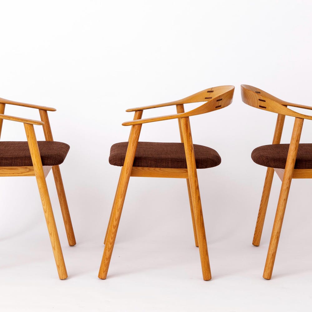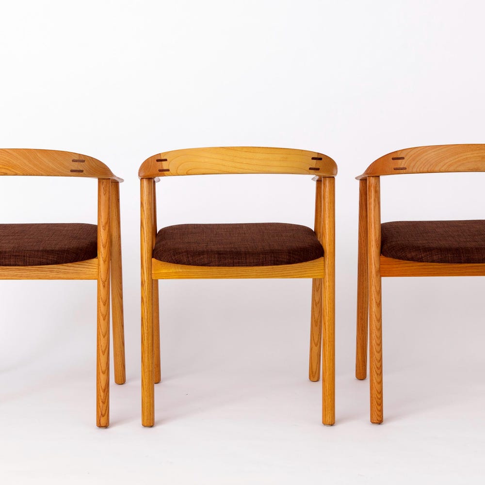 Set of 6 Vintage Dining Chairs – Likely Danish, 1970s A beautiful and unique set of six vintage dining chairs from the 1970s. While the exact manufacturer remains unidentified, they likely originate from Denmark or Sweden, showcasing elegant design details and dark wood inlays. To enhance their aesthetic appeal, we have selected brown seat cushions […]
