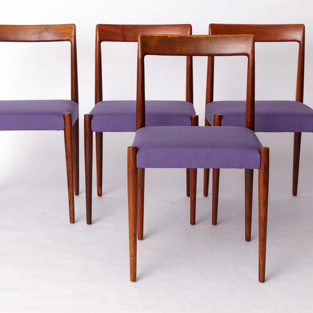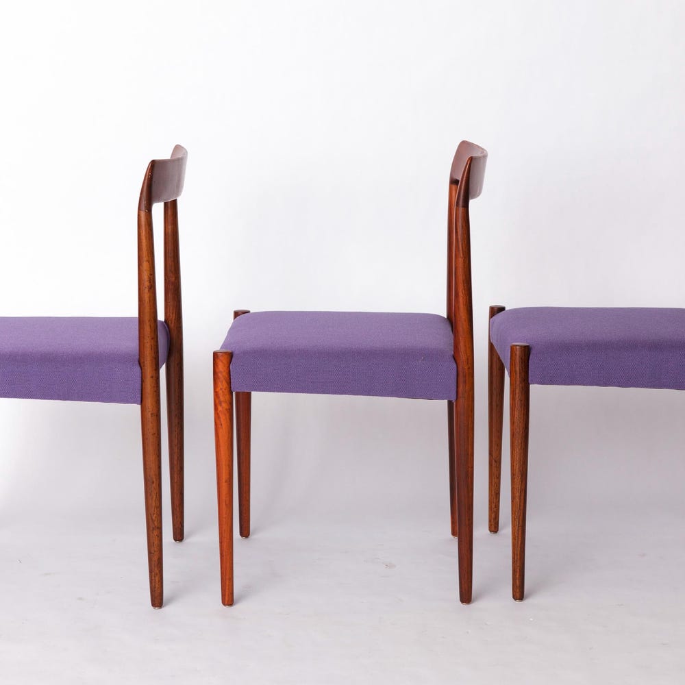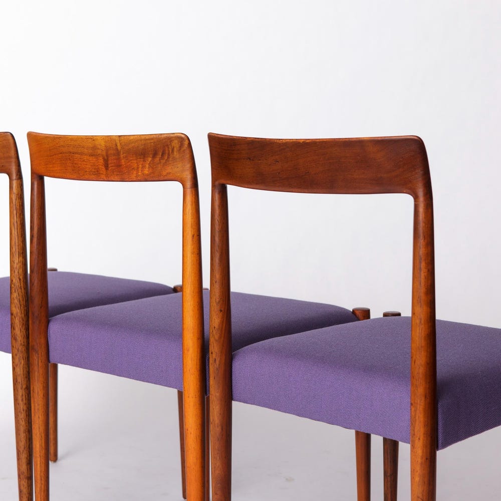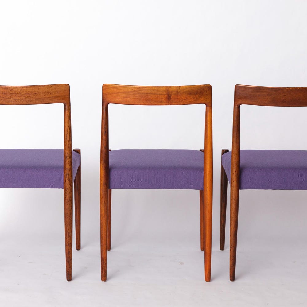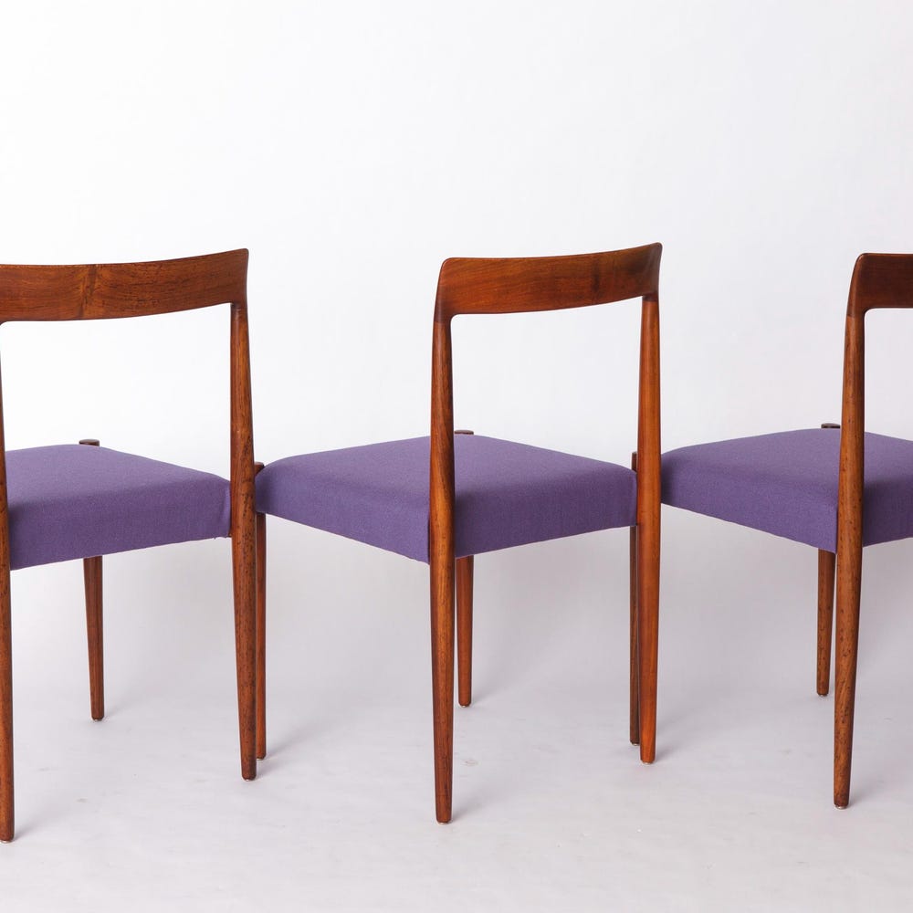Set of 6 Vintage Rosewood Dining Chairs by Lübke, Germany, 1970s – Refurbished with Lilac Upholstery