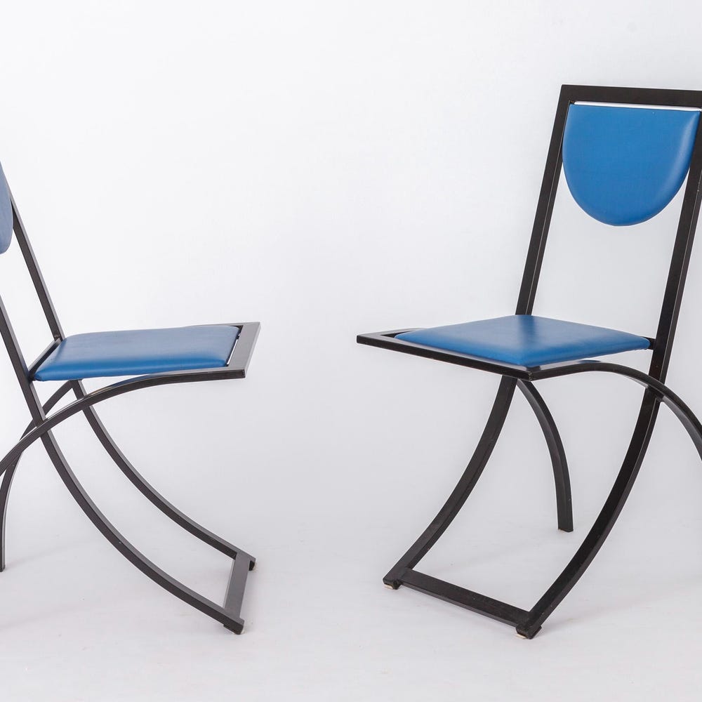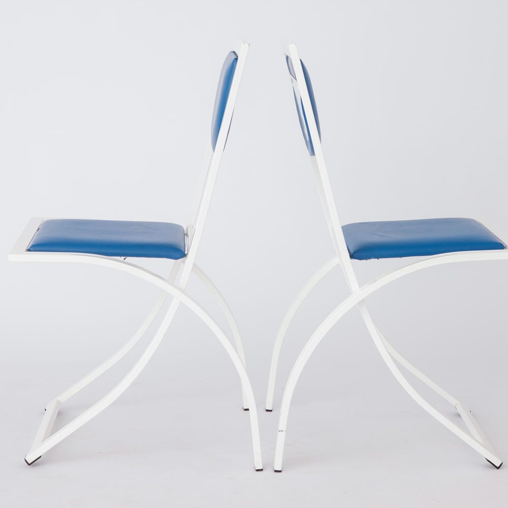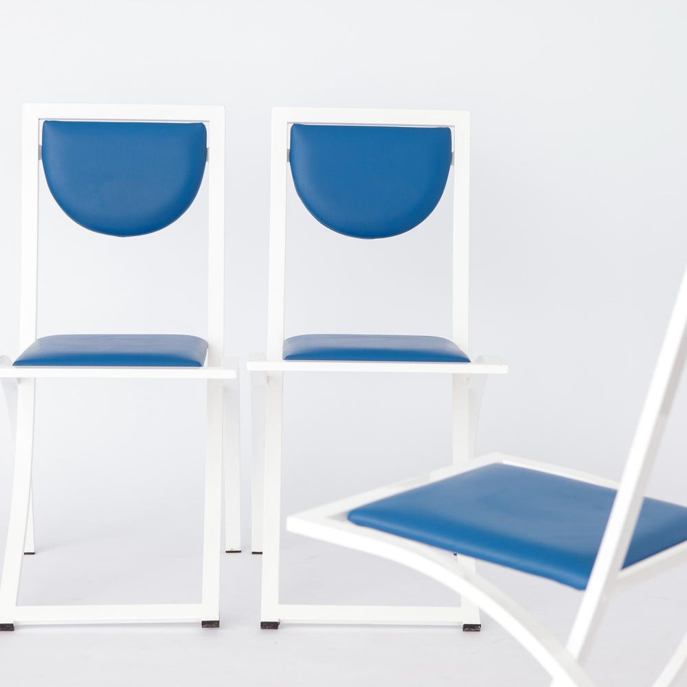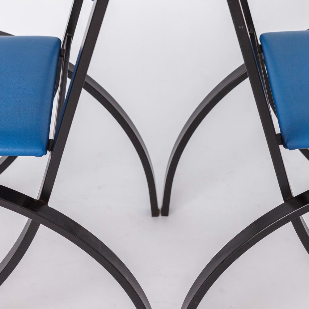 Set of 7 Vintage Karl Friedrich Förster Chairs | 1980s German Design | Blue Skai Upholstery | Sturdy metal frames