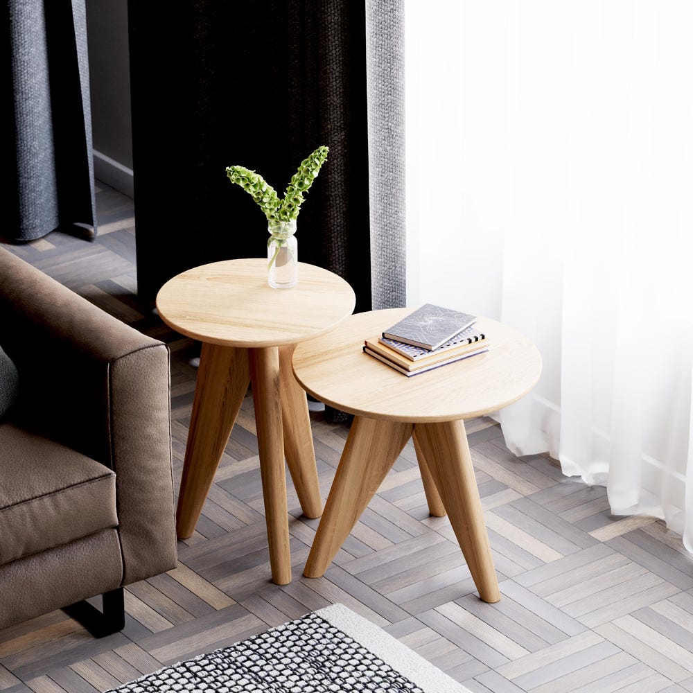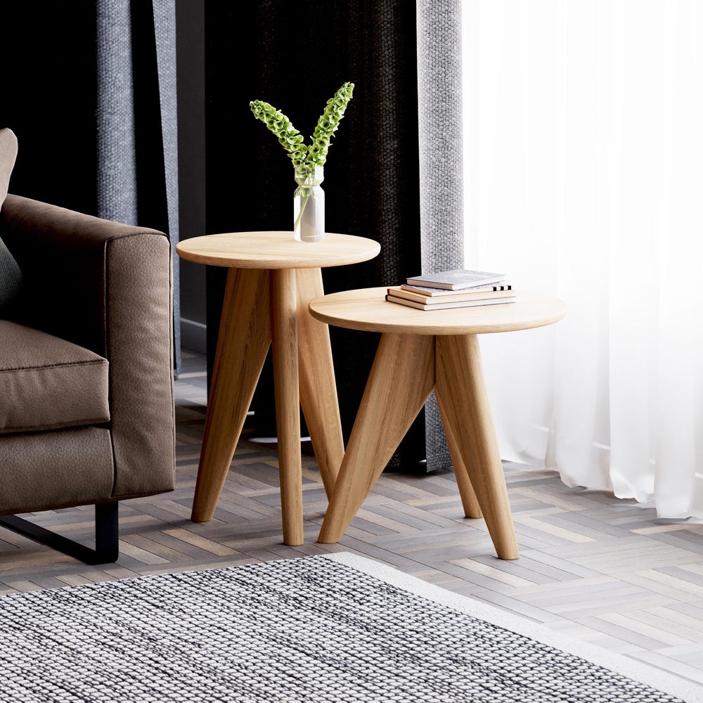Set of End Table – Round Nesting Side Table – Solid Oak Wood Table – Modern Nesting Tables for Living Room – Set of End Side Tables