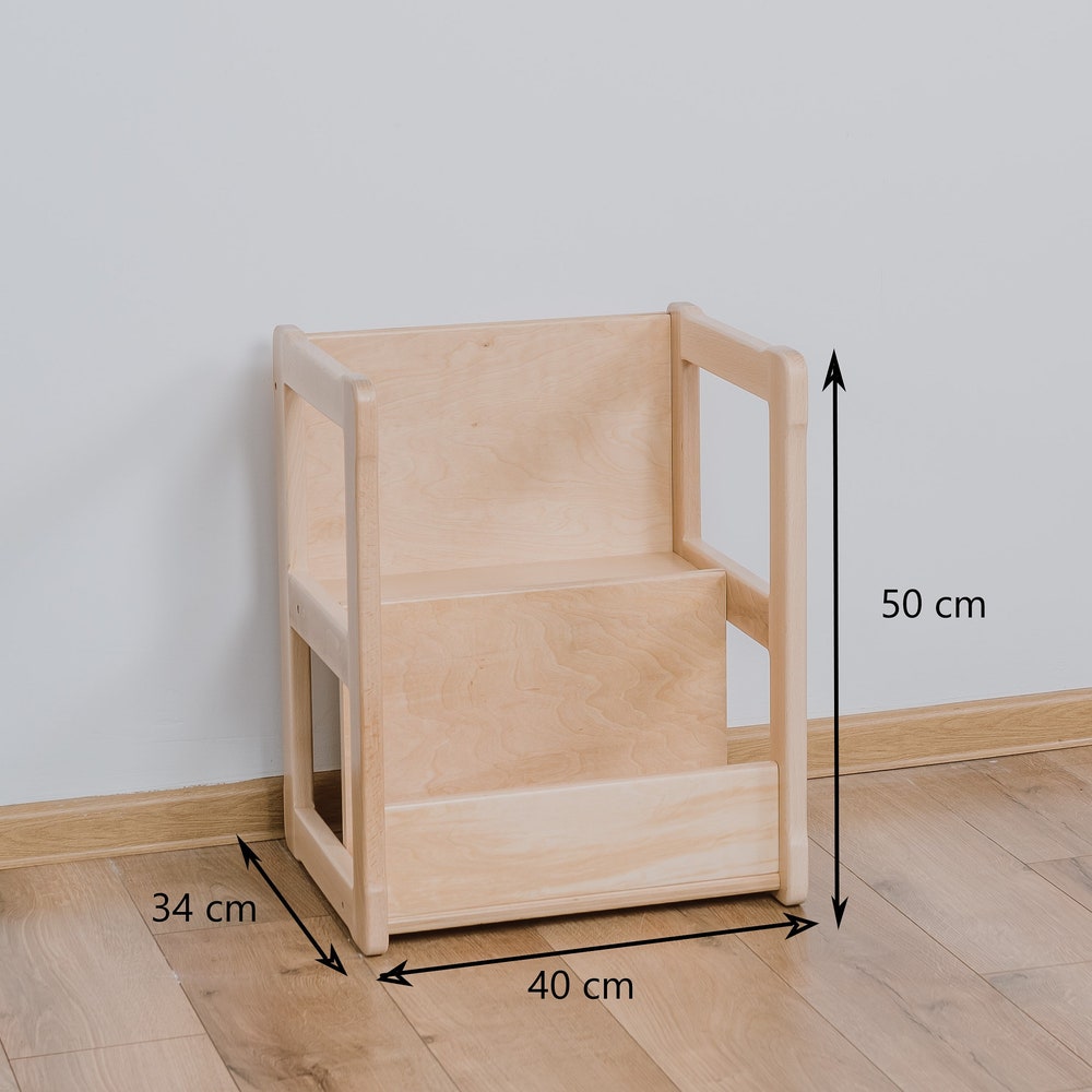 Introducing Woodjoy’s Montessori SMALL Bookshelf, a versatile and functional addition to your child’s environment. The Montessori SMALL Bookshelf is carefully structured to allow your child to see the covers of their books, making it easy for them to select and retrieve their desired reading material. What sets this bookshelf apart is its adaptability; it can be rotated and used in various ways. It can transform into a chair, a table, or create the perfect play station, offering endless possibilities for your child’s imagination to flourish. Our Montessori MINI Shelf complements the SMALL Bookshelf beautifully. With its low, open shelves placed across three levels, it provides an ideal storage solution for toys and books. These deep shelves can accommodate even larger toys and accessories, nurturing your child’s development through organized play.