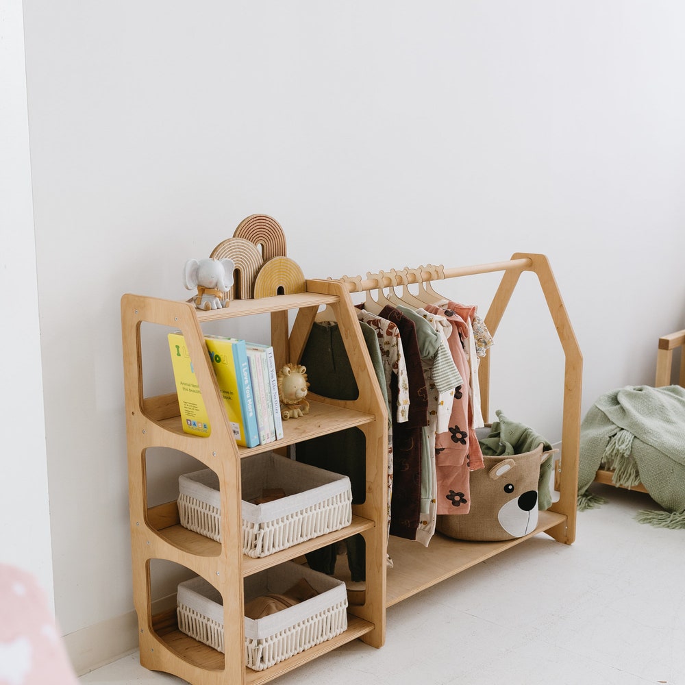 Set of Open Shelves: Toy Storage + Kid Clothing Rack, Toddler Nursery, Toys Shelf, Montessori Furniture, Open Shelf, Montessori Shelves