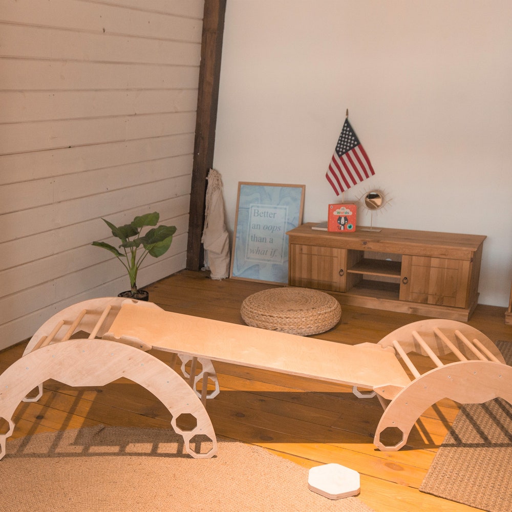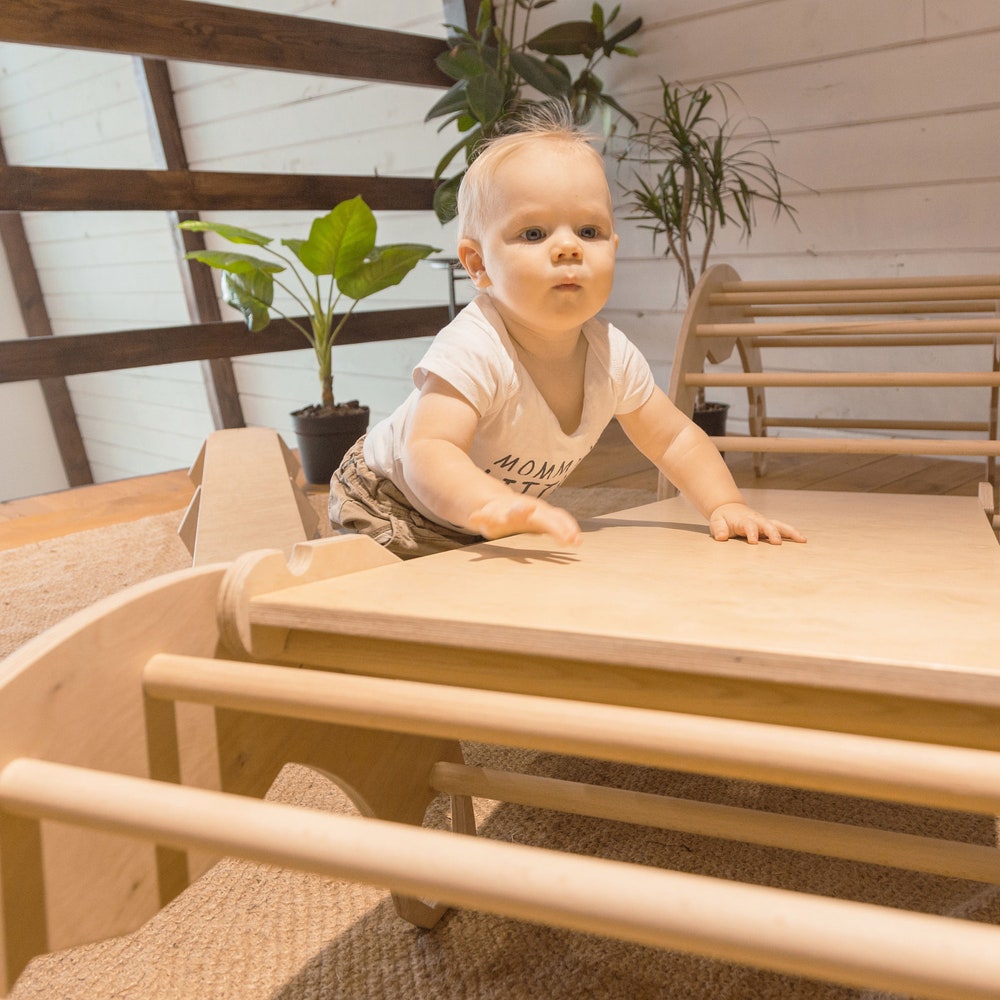 Set of three items: TWO LARGE Climbing Arch + Ramp, Montessori furniture, Baby wood Gym, Toddler climber Balance board Waldorf kids ladder