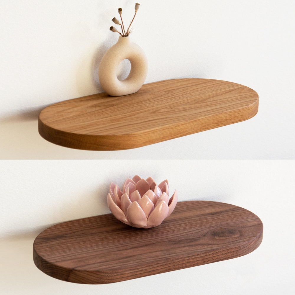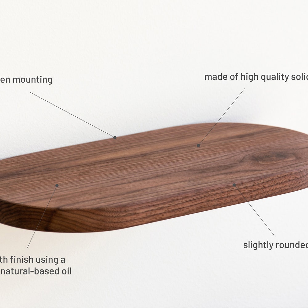 Where to use this floating shelf? Mount it as a bedside shelf, kitchen storage, bathroom furniture or in any other room where you appreciate the arch shape combined with practical, space-saver storage. Each piece is unique, as these shelves are made of solid wood (top-grade, hand-selected wood material).