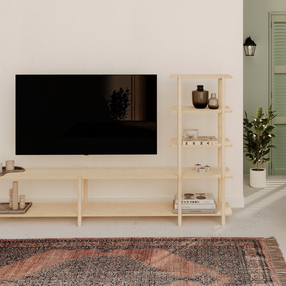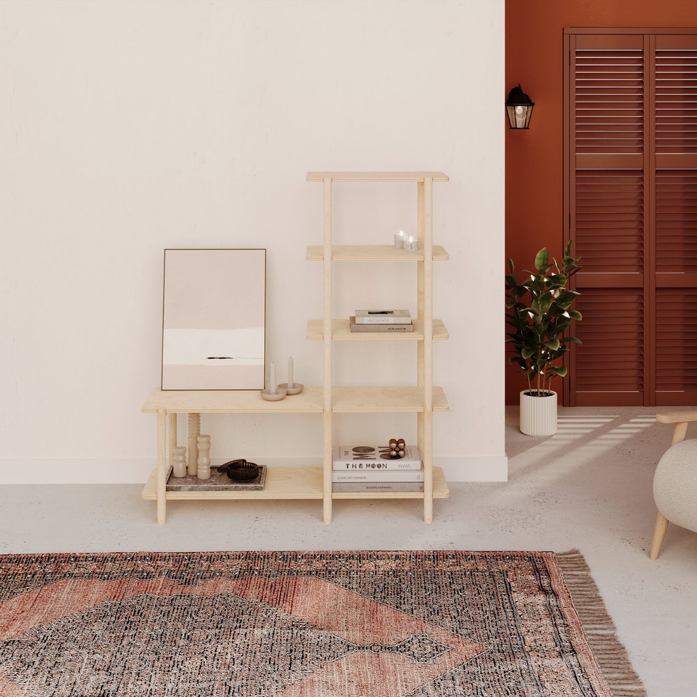 Minimalistic handcrafted shelving unit / bookcase / tv console. Fits any space at home or in office, in entryway, in living room, in bedroom, you can also use it as Tv Stand. It will keep your books, accessories and home decorations in one place! Different wood options and sizes are available.