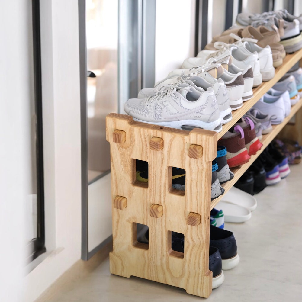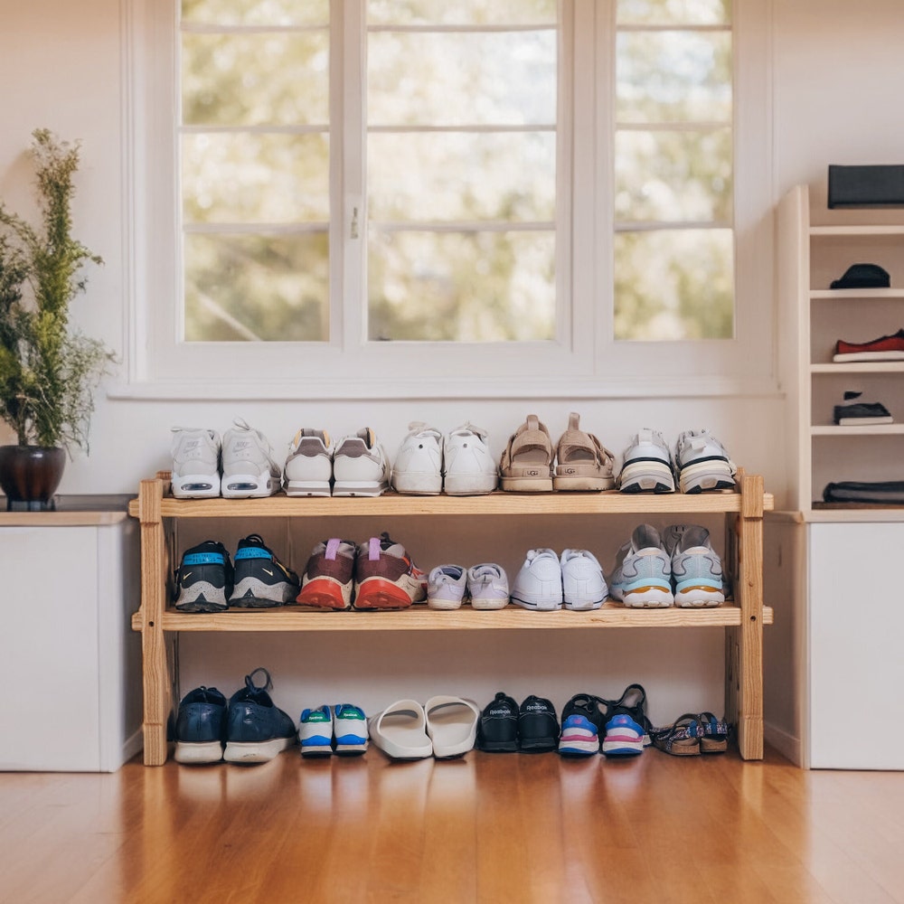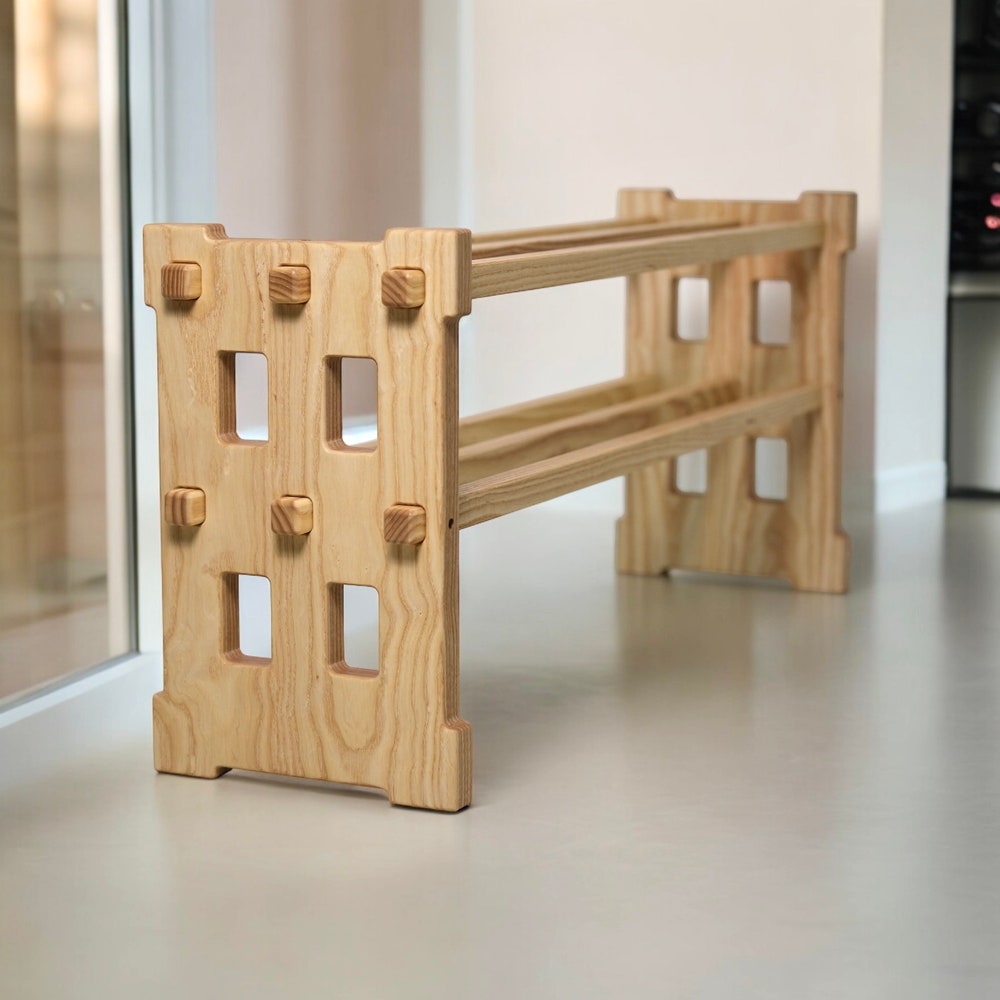 A great solution for any modern entryway, living room, office etc. Handcrafted from high – quality wood in the USA, this 2- tiered shoe rack will serve you for years!