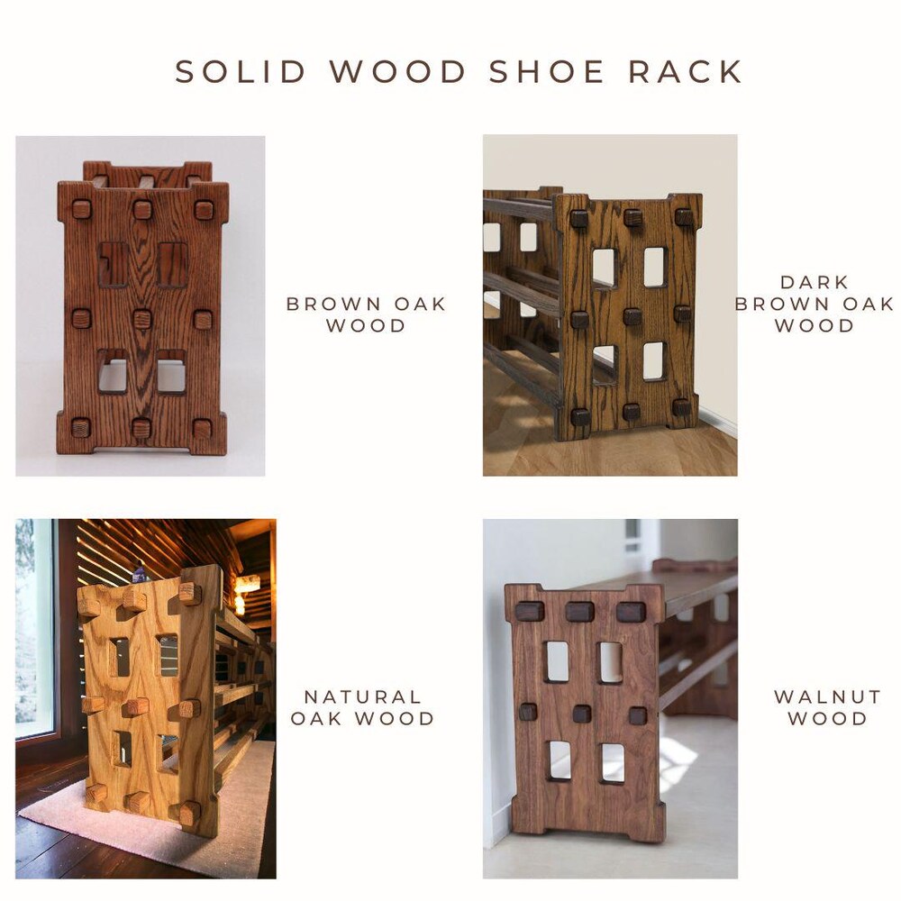 Organize your footwear collection in style with our handcrafted wood shoe rack. Crafted from high-quality oak and walnut wood, this sturdy and versatile shoe rack offers a perfect blend of functionality and elegance.