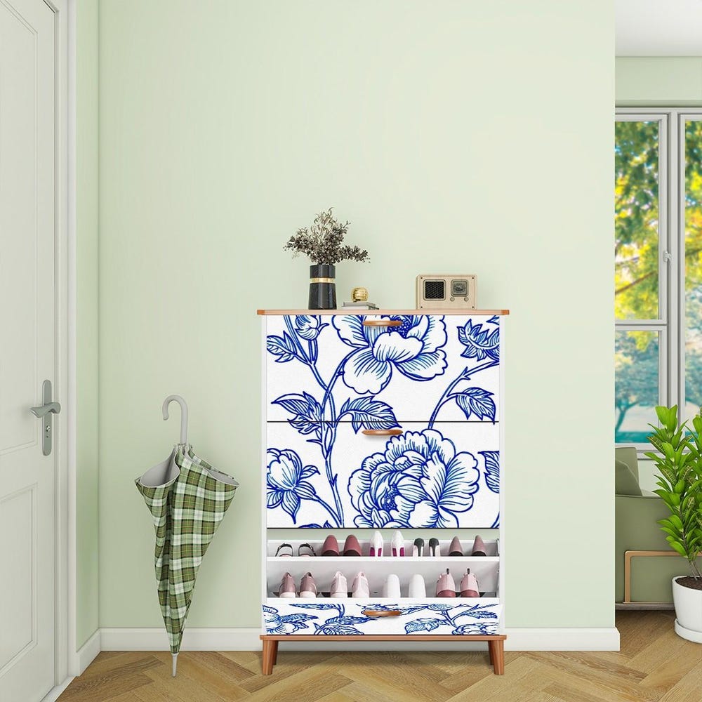 Declutter your home with this modern shoe storage cabinet, designed to hold 12-22 pairs of shoes while adding a stylish touch to your space. Featuring three foldable flip drawers, adjustable shelves, and a sleek MDF wood design, this cabinet is perfect for entryways, bedrooms, dorm rooms, salons, small apartments, and more.