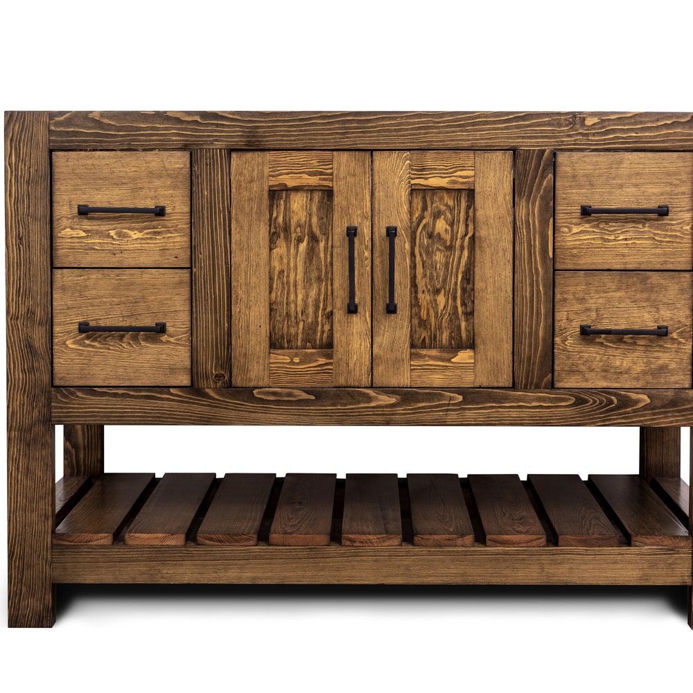 Single Sink Vanity Base in Solid Pine Wood, Wood Top Not Included, Farmhouse Style