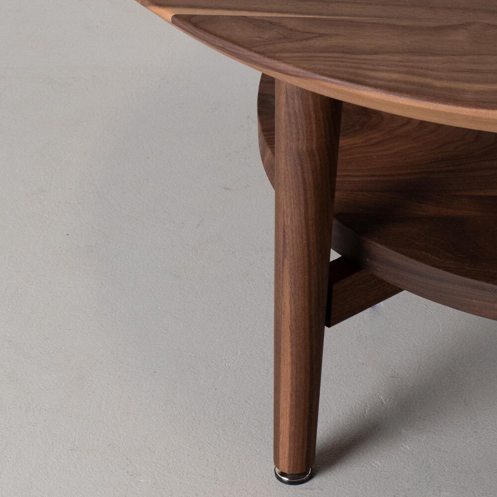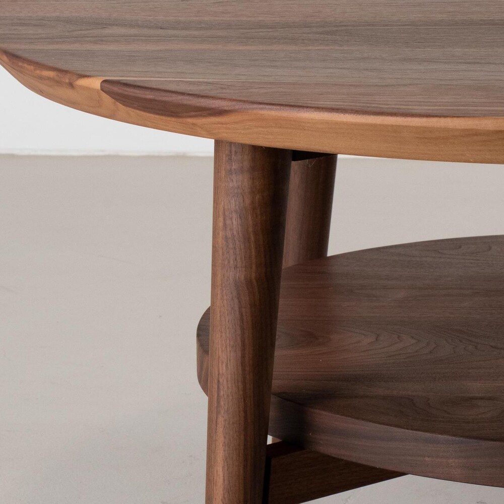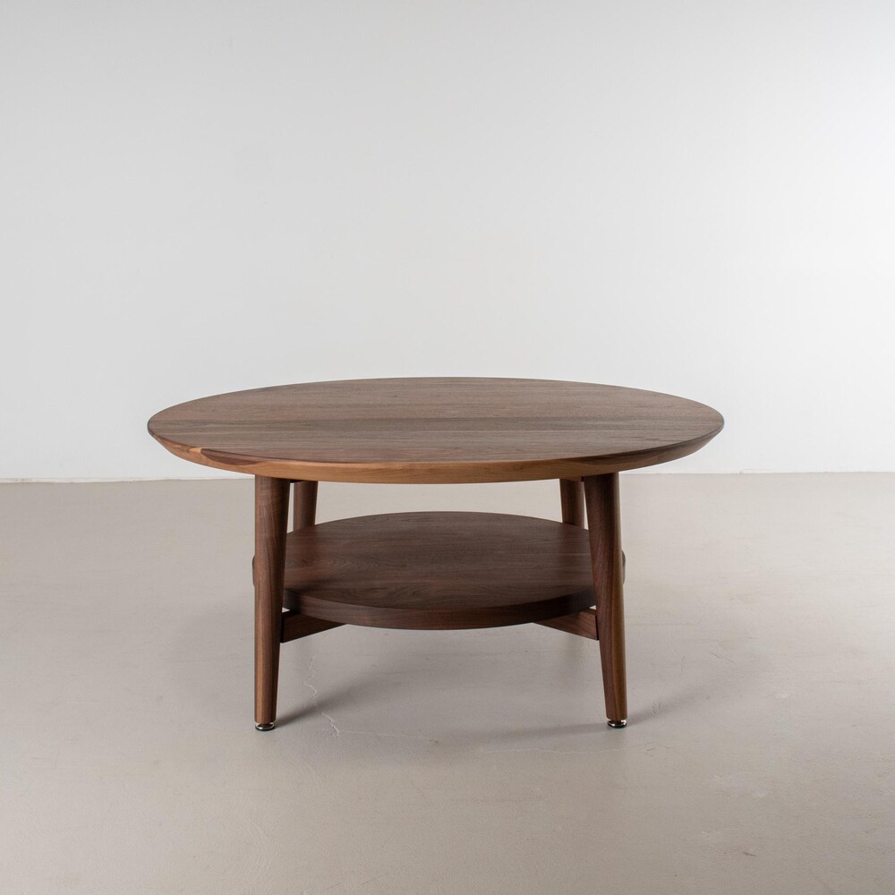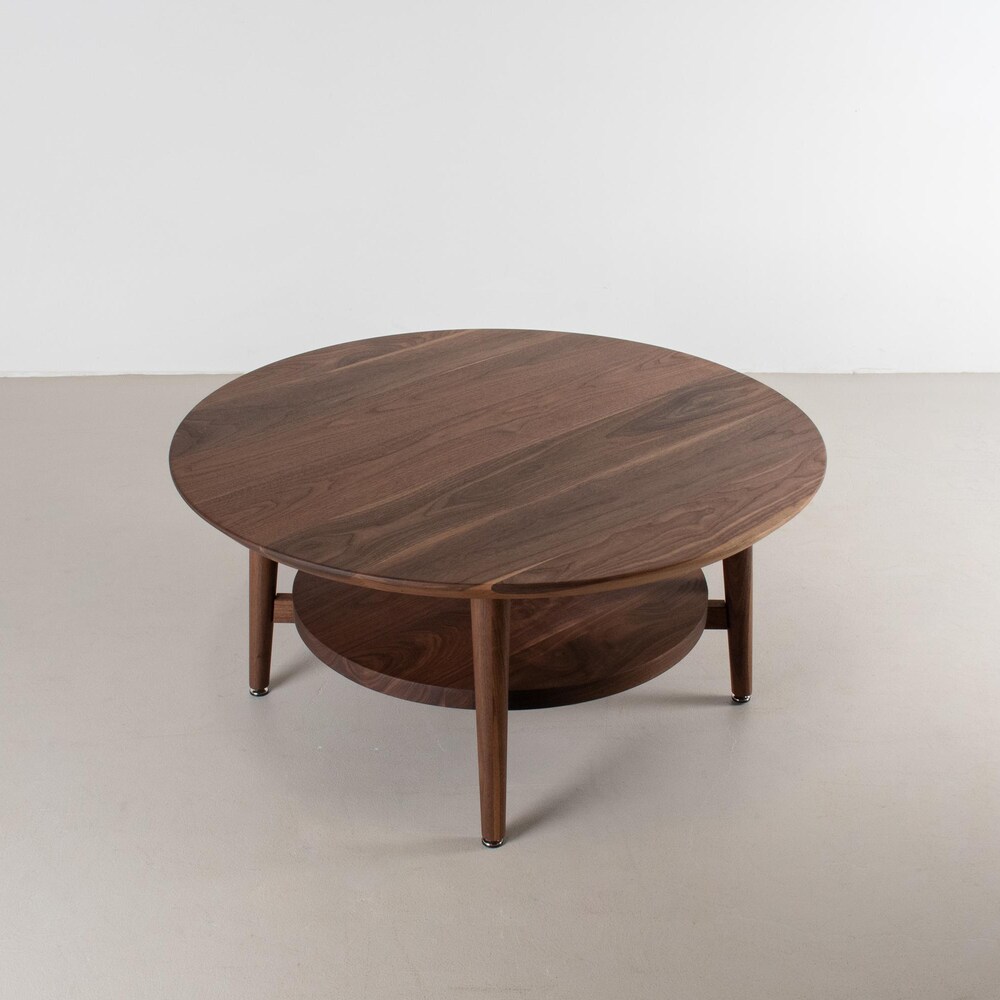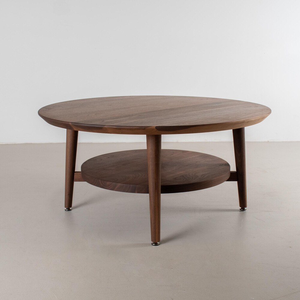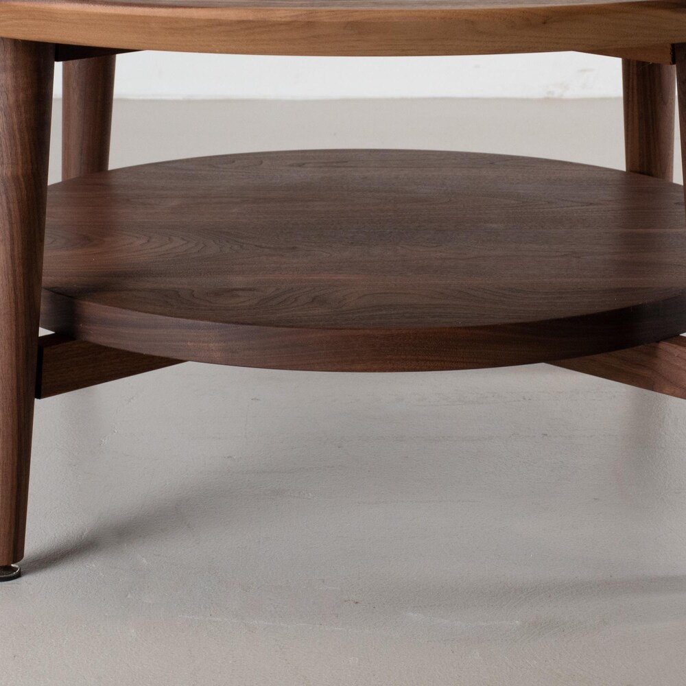 Small Coffee Table, Round Walnut Coffee Table, Coffee Table Wood, Small Round Coffee Table with Shelf, MidCentury Modern Walnut Coffee Table