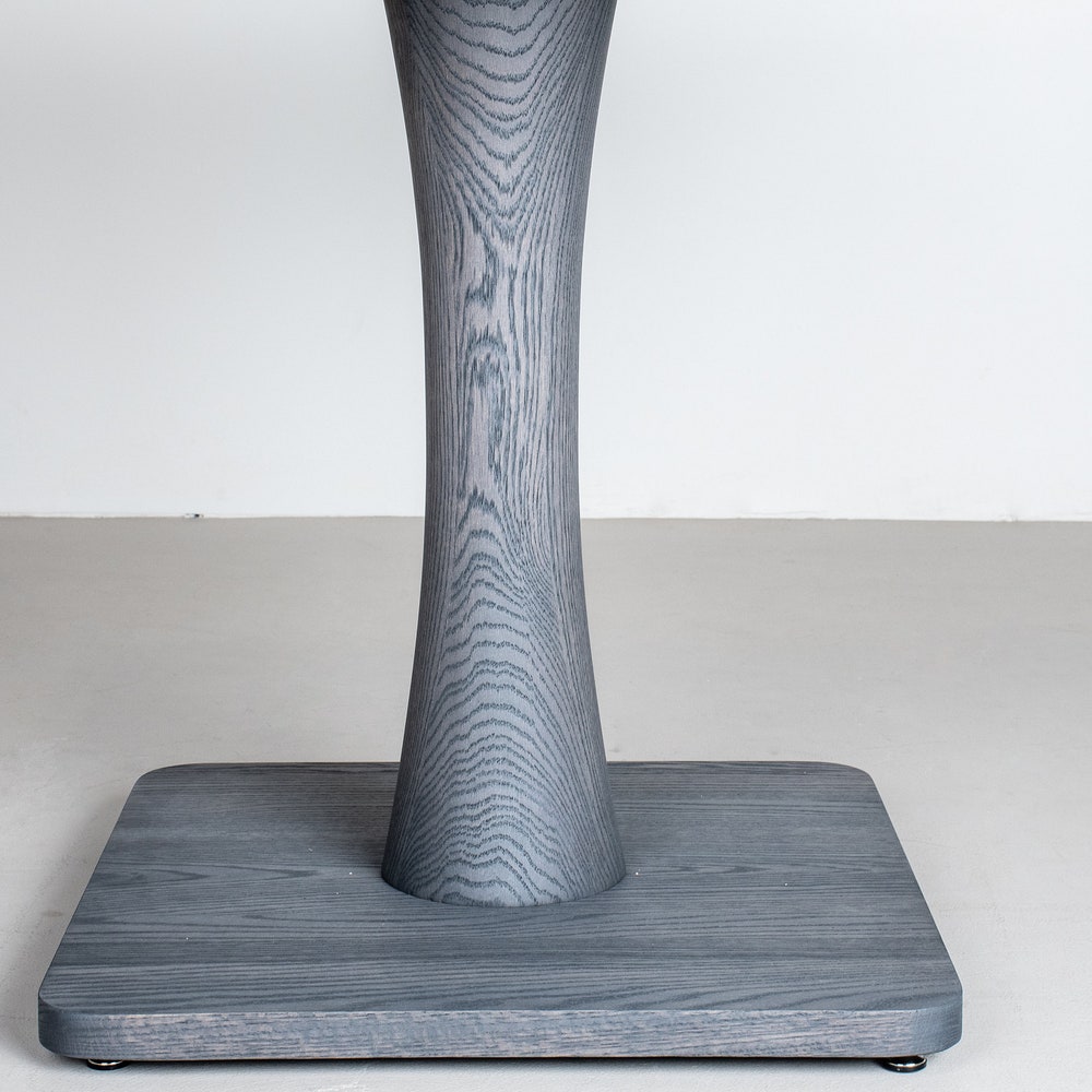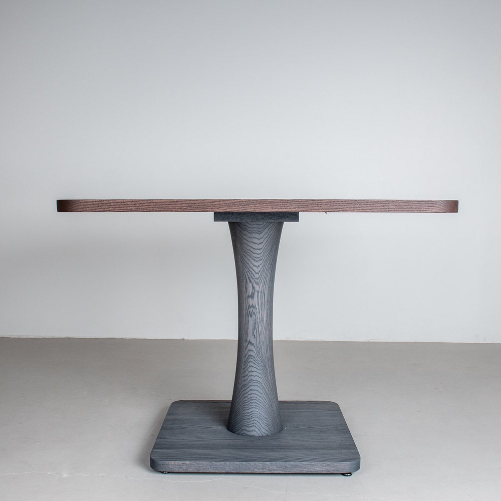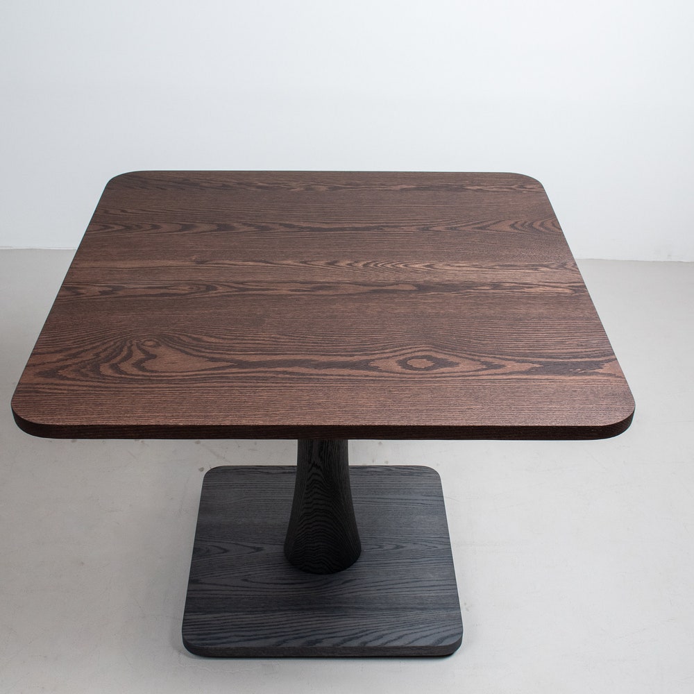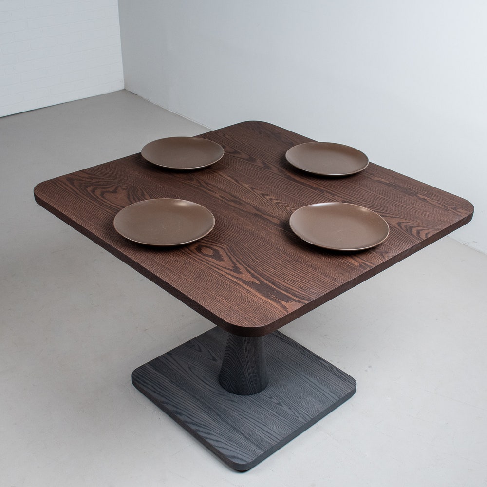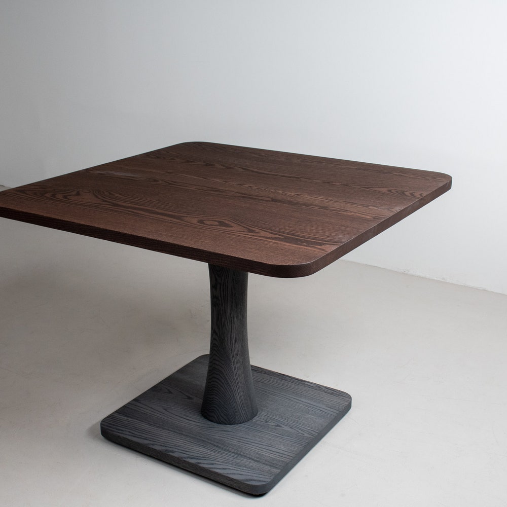 A pedestal table makes a perfect dining table for 4. This particular one was custom built for a customer out of oak. The top is finished in espresso and the base is finished in iron. We build every table to order so there are many ways to make this table perfect for you.
