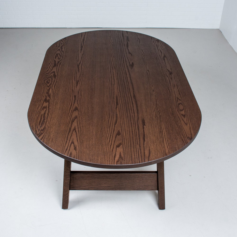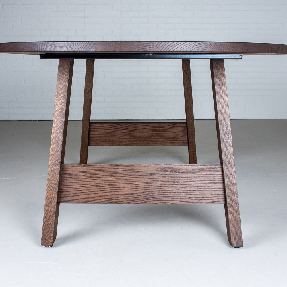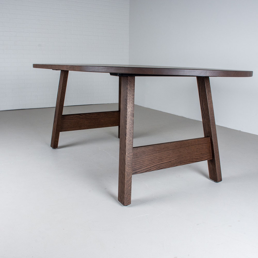 This small oak kitchen table has a timeless elegance to it. The dark tones of the espresso finish on the solid oak fit with a range of design styles. And the soft lines of the oval top and angled legs make it a comfortable place to hang out. We build every table to order so there are many ways to make this table perfect for you.