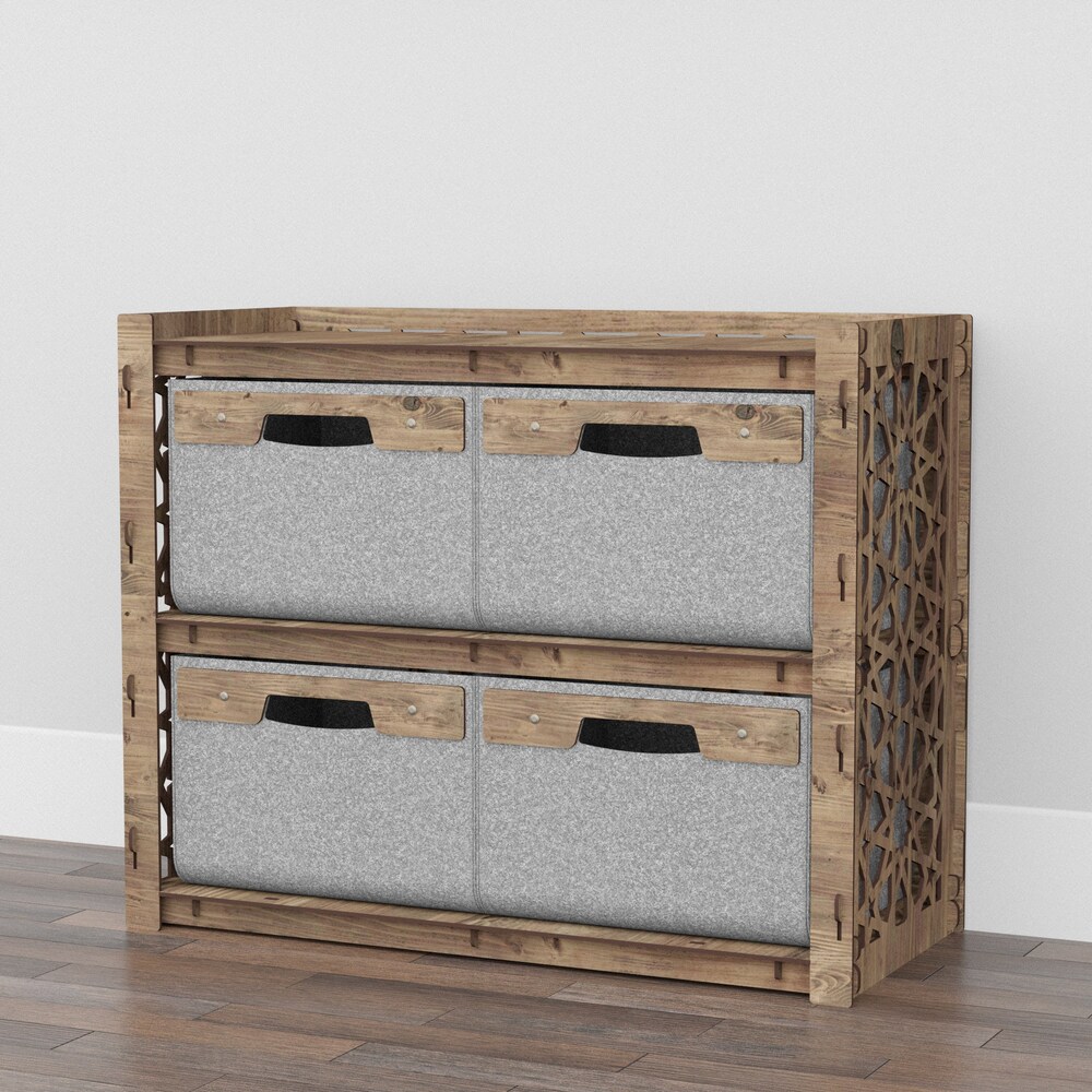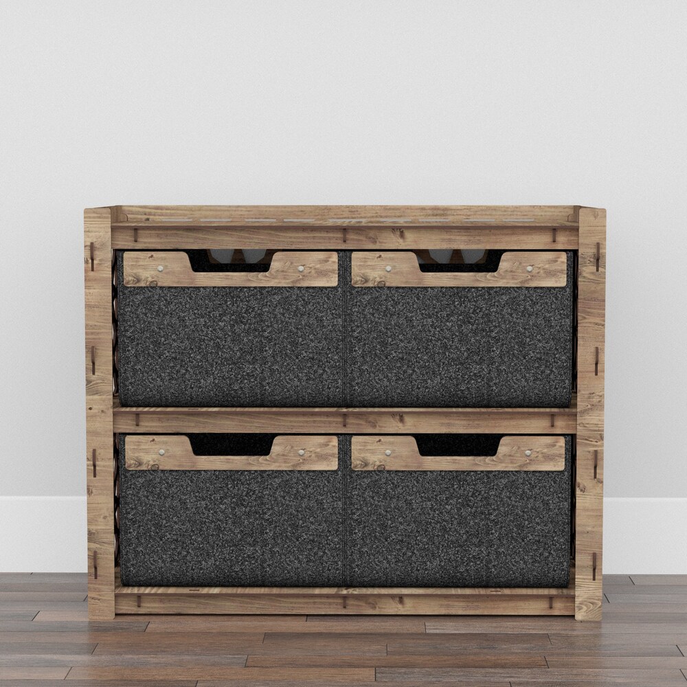 Small Storage Cabinet with Bins, Bookshelf, Low Wooden Dresser, Bedroom Shelf