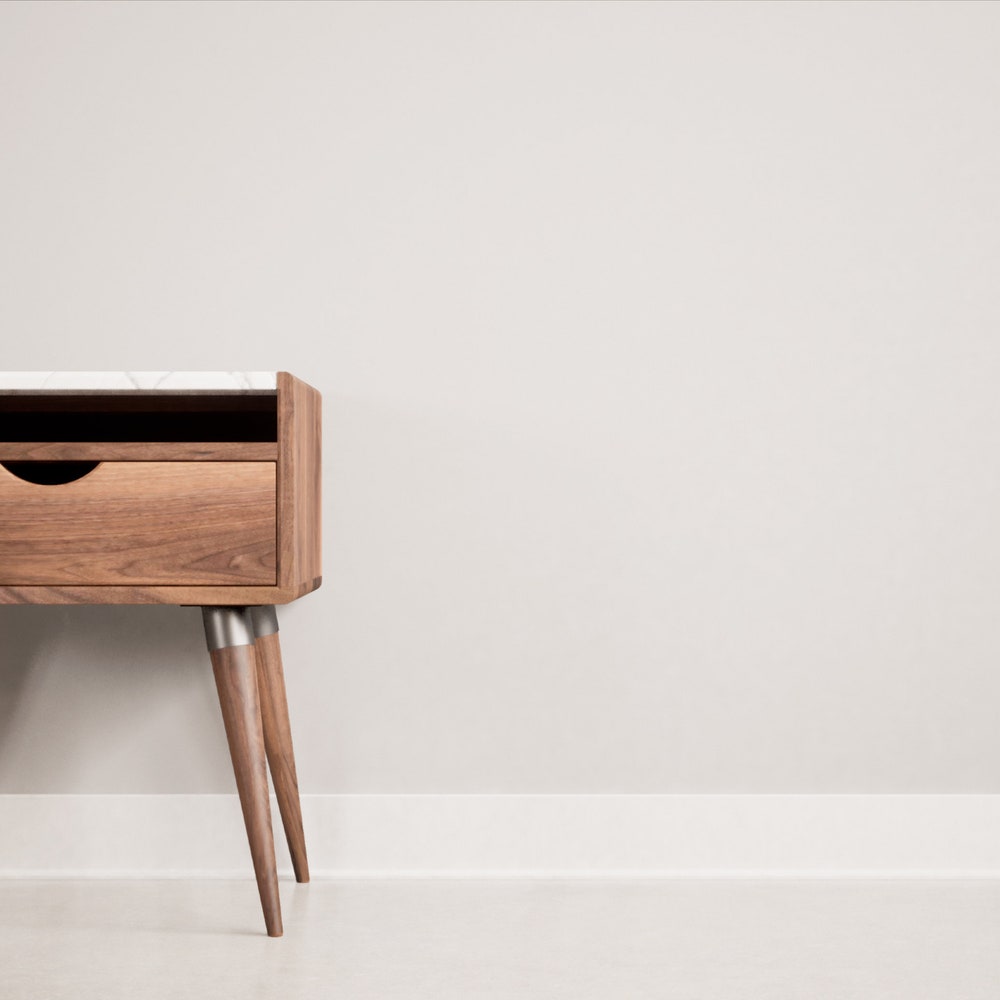 Black oak entryway shelf with FLUTED drawers / narrow entryway table