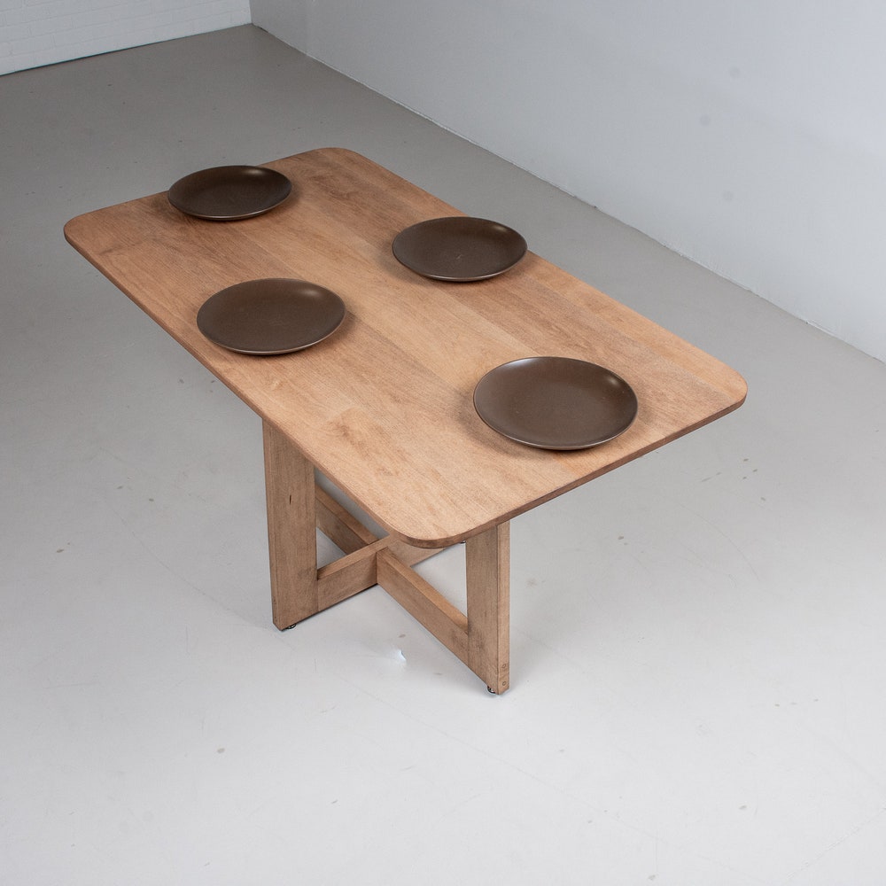 Small Wooden Dining Table in Maple, Small Breakfast Table, Single Cross Base Apartment Table, Small Kitchen Table for 2-4 People