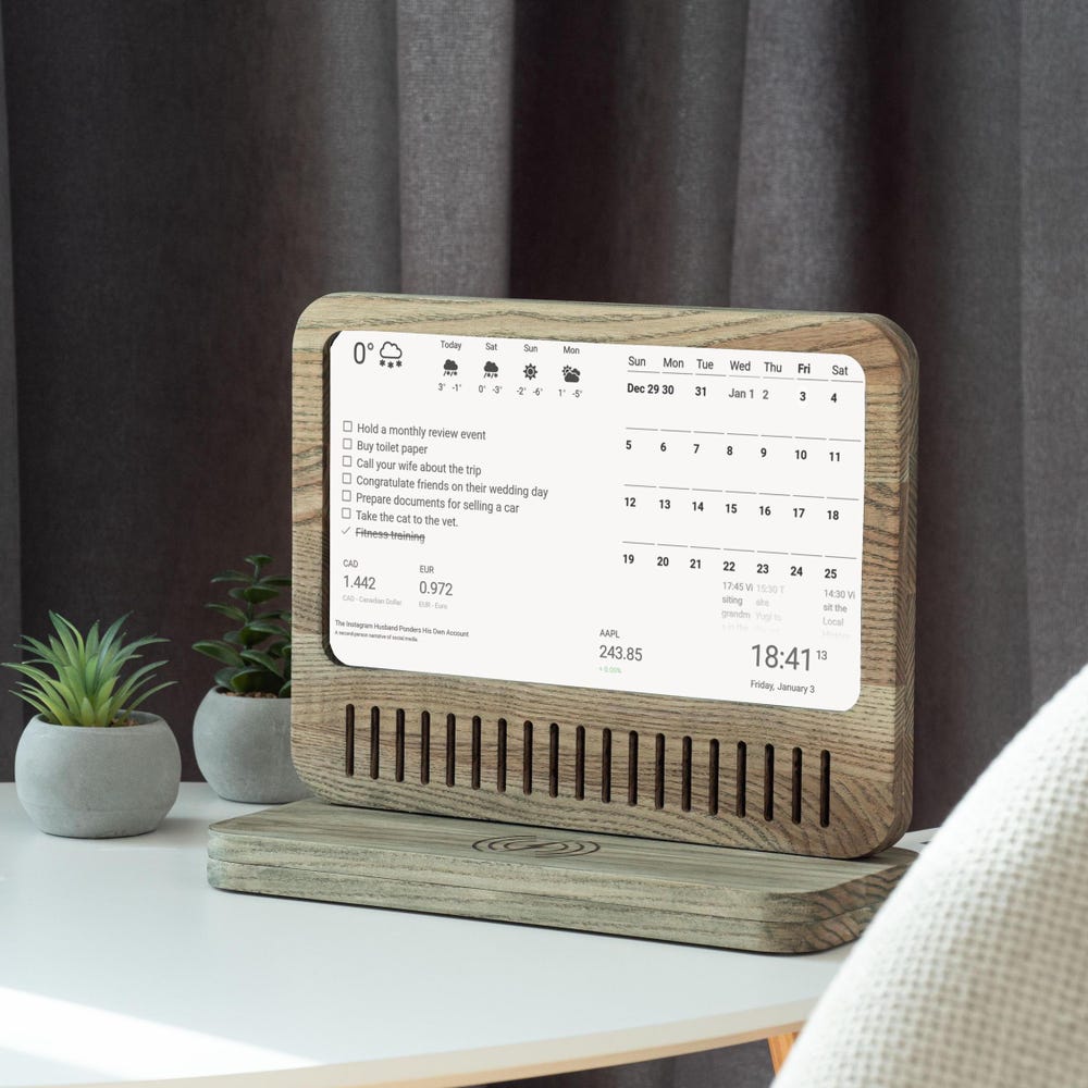 Elegant and functional, it features a 10-inch screen housed in a refined ash wood frame — ideal for any professional’s office or executive desk. With DAKboard integration, it shows calendars, stock market updates, business news, to-do lists, and weather — all on a clean, customizable interface.