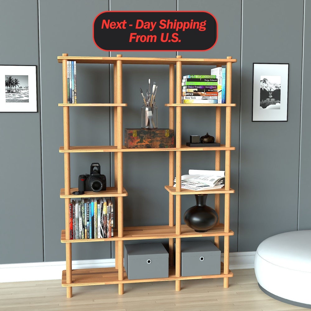 Solid Beech Wood Bookshelf For Office, Solid Wood Bookcase With 6 Shelves, Custom Design Farm House Bookcase, Living Room Bookshelf