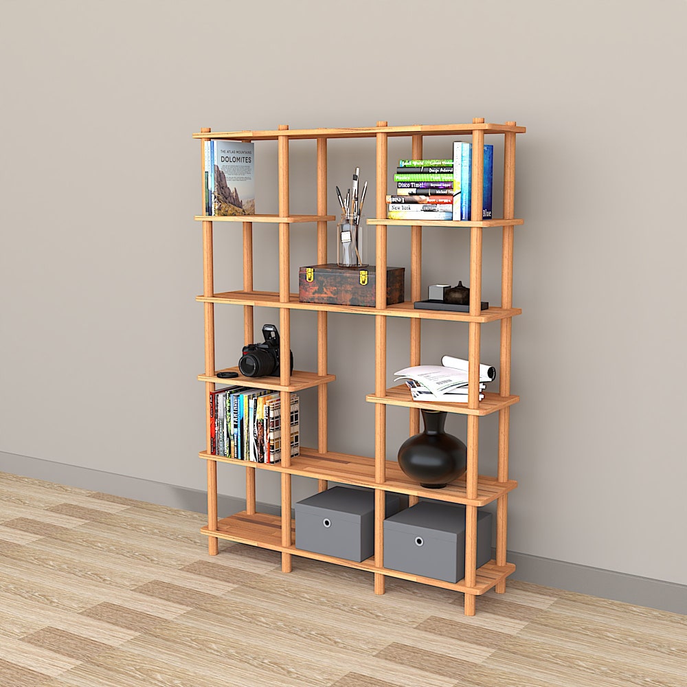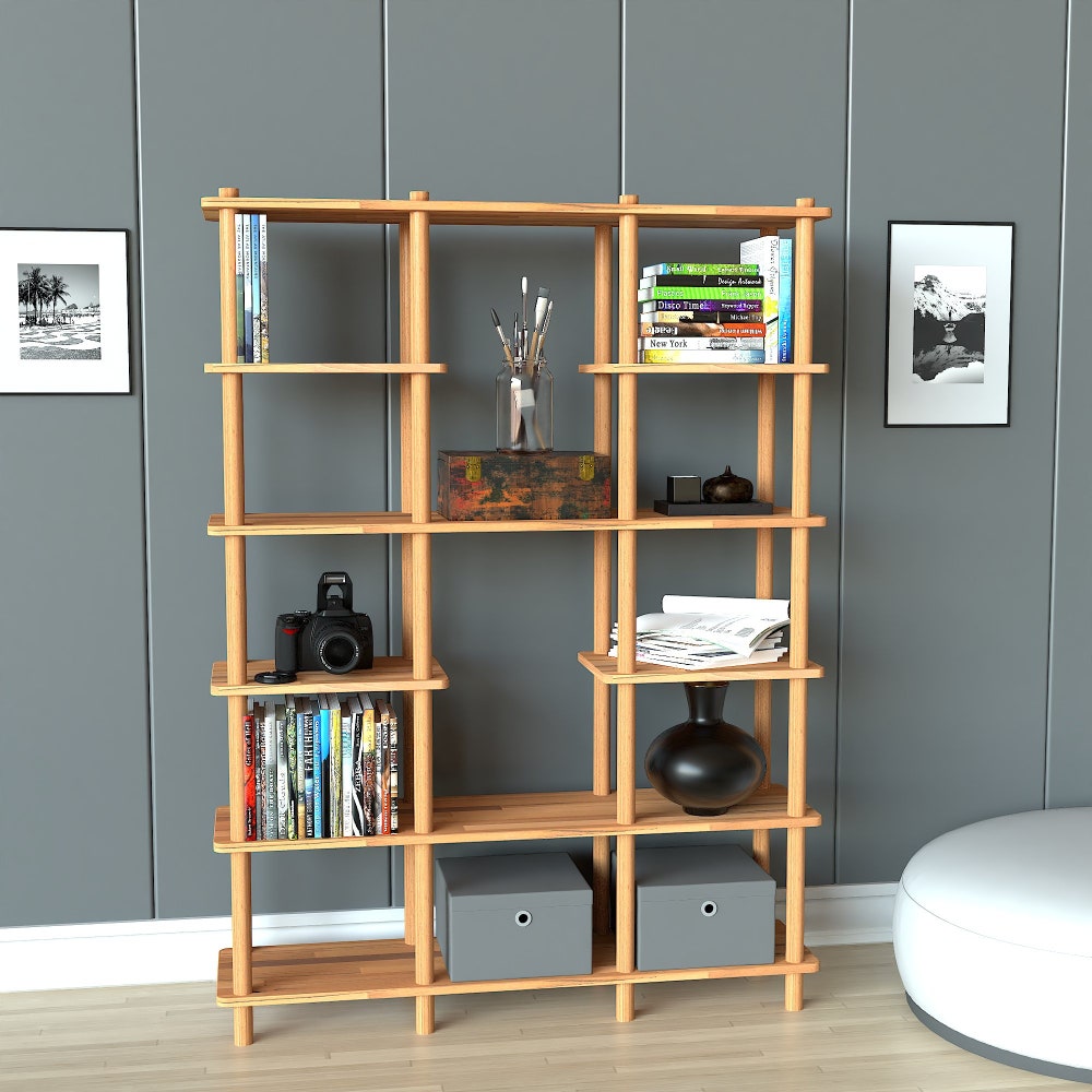This unique wooden bookcase is a perfect piece of furniture that combines both functionality and aesthetics. Made from high-quality wood materials, this bookcase offers durability and elegance in one package. It provides an ideal space to display your books or organize other decorative items.