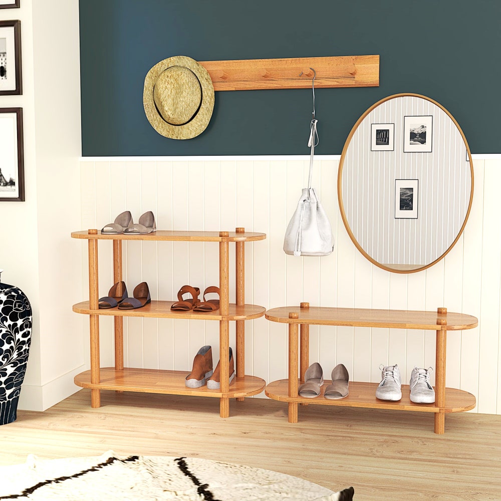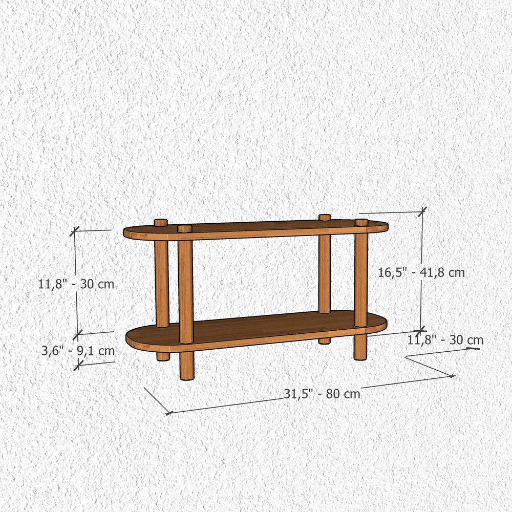This handmade minimalist dual shelf combines elegance and functionality in your living room. Crafted from solid wood with rounded corners, this versatile piece is the perfect choice to complete your modern home decor. This multipurpose item offers an elegant surface for use as both a coffee table or a TV unit in your living room, while also providing an ideal solution for keeping your shoes neatly organized. Its handmade nature ensures that each piece is unique. This wooden shelf is an excellent choice for those seeking both functionality and aesthetics.